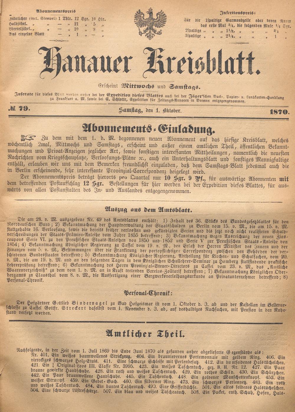Hanauer Kreisblatt. 1870-1871