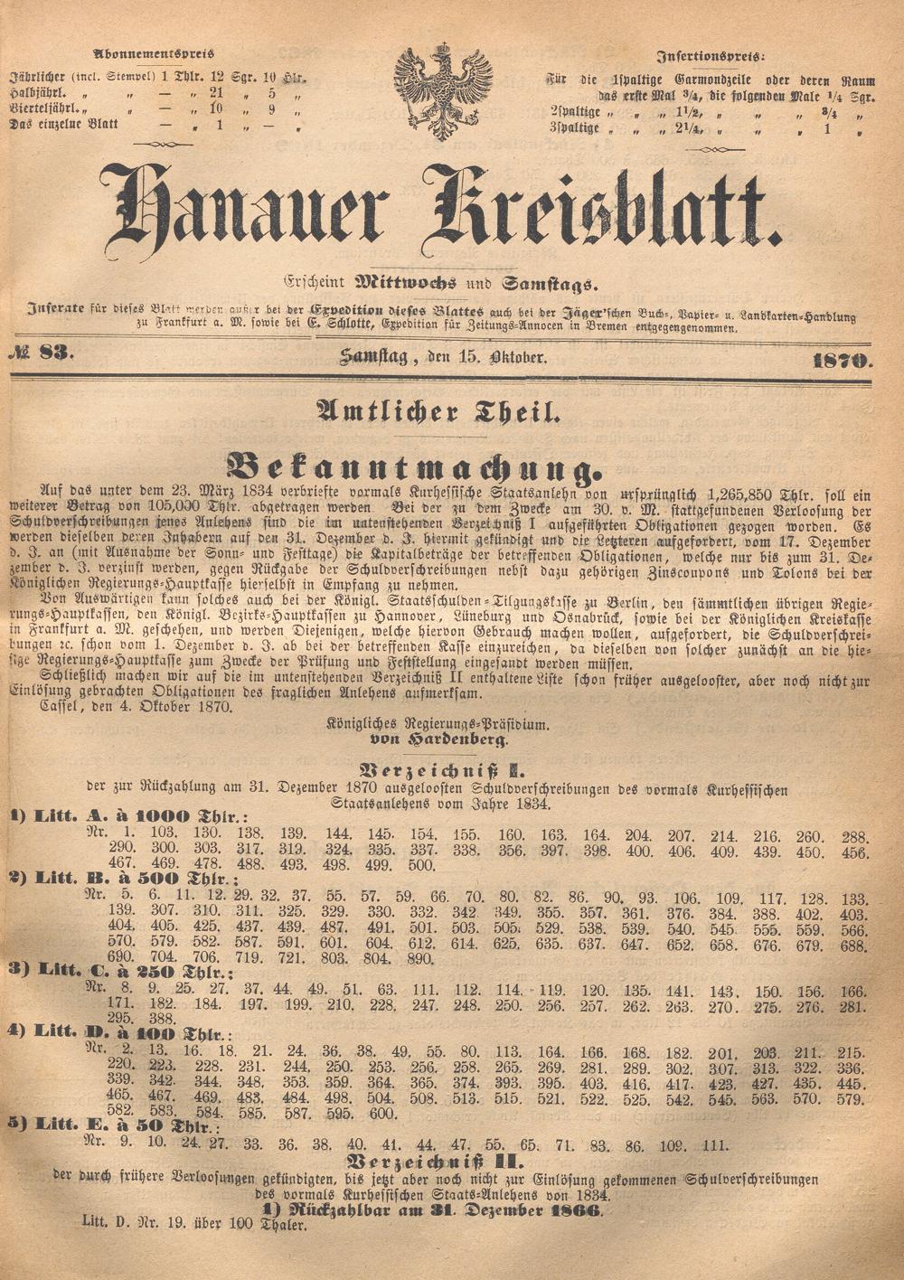 Hanauer Kreisblatt. 1870-1871