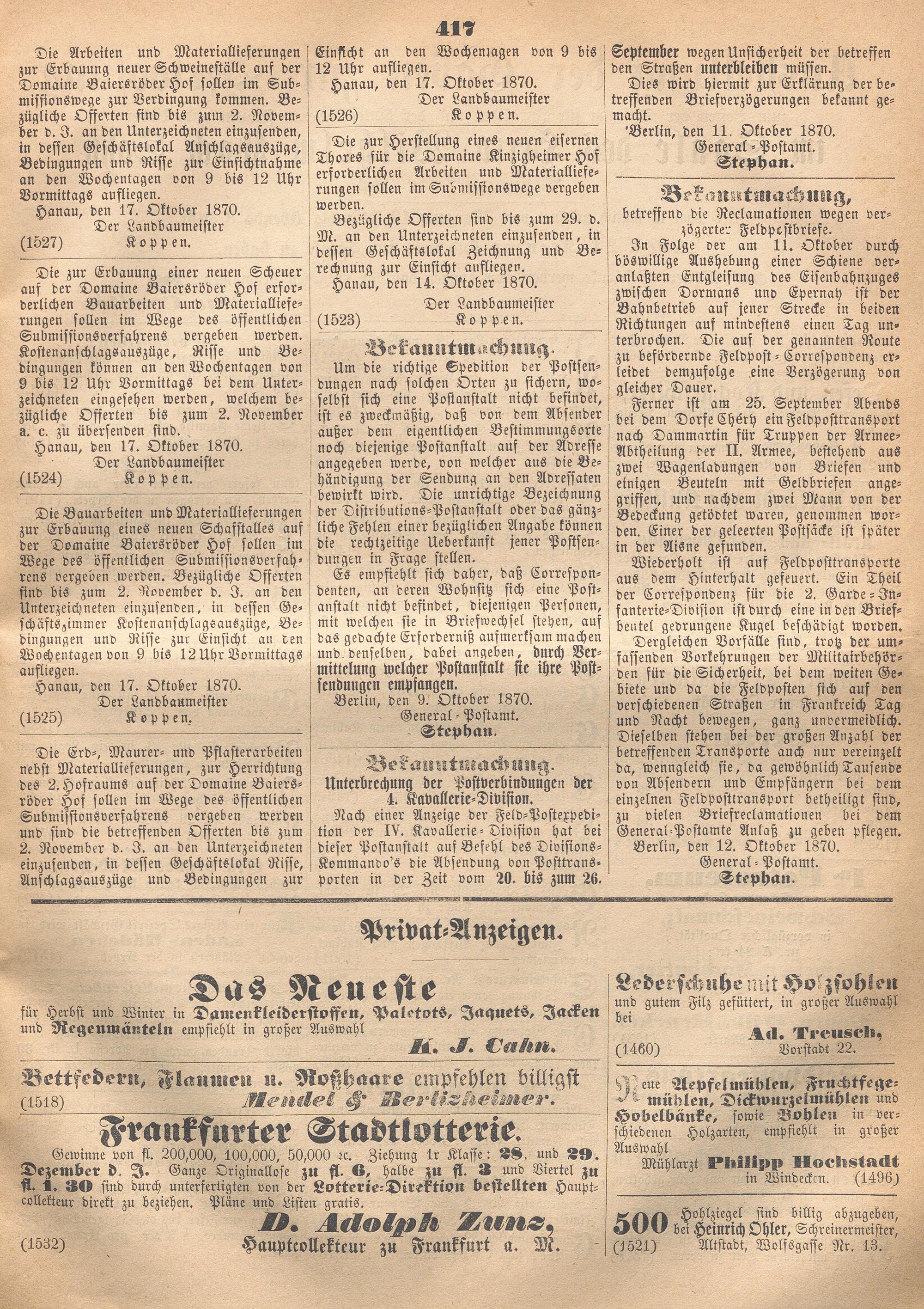 Hanauer Kreisblatt. 1870-1871