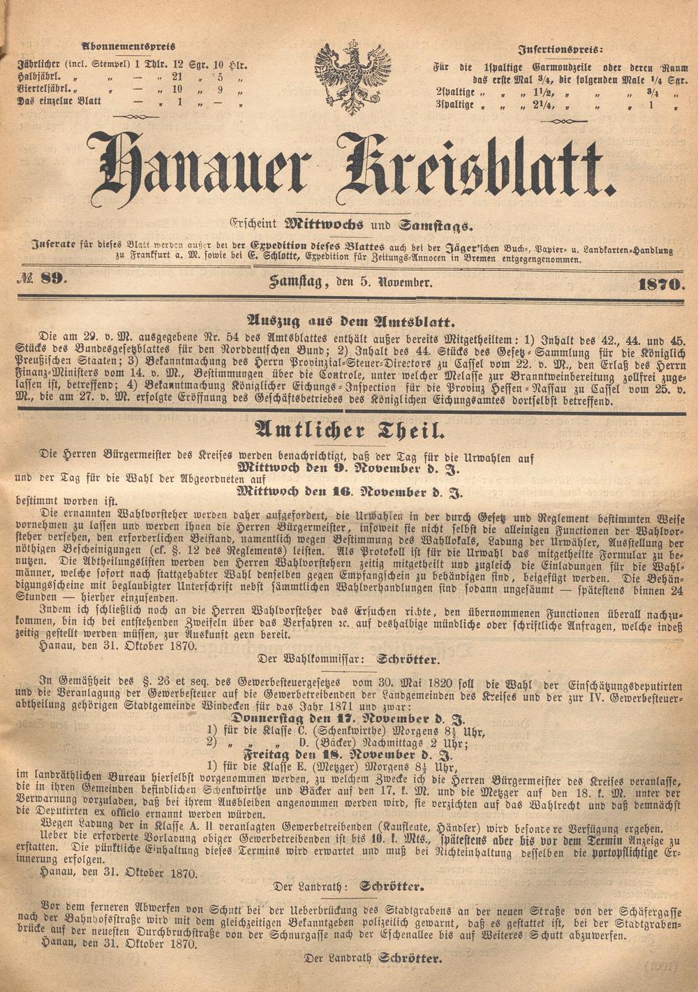 Hanauer Kreisblatt. 1870-1871