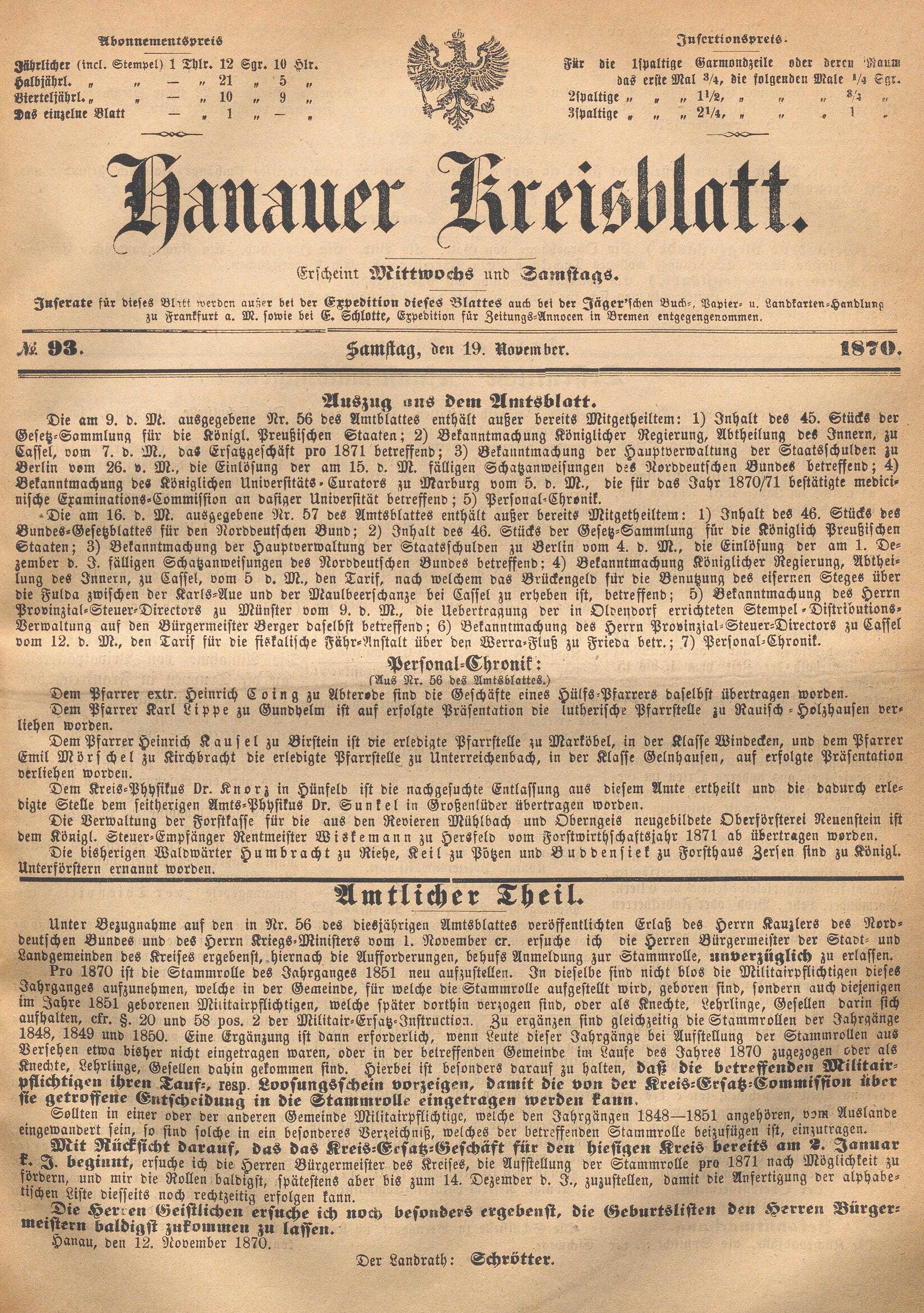 Hanauer Kreisblatt. 1870-1871