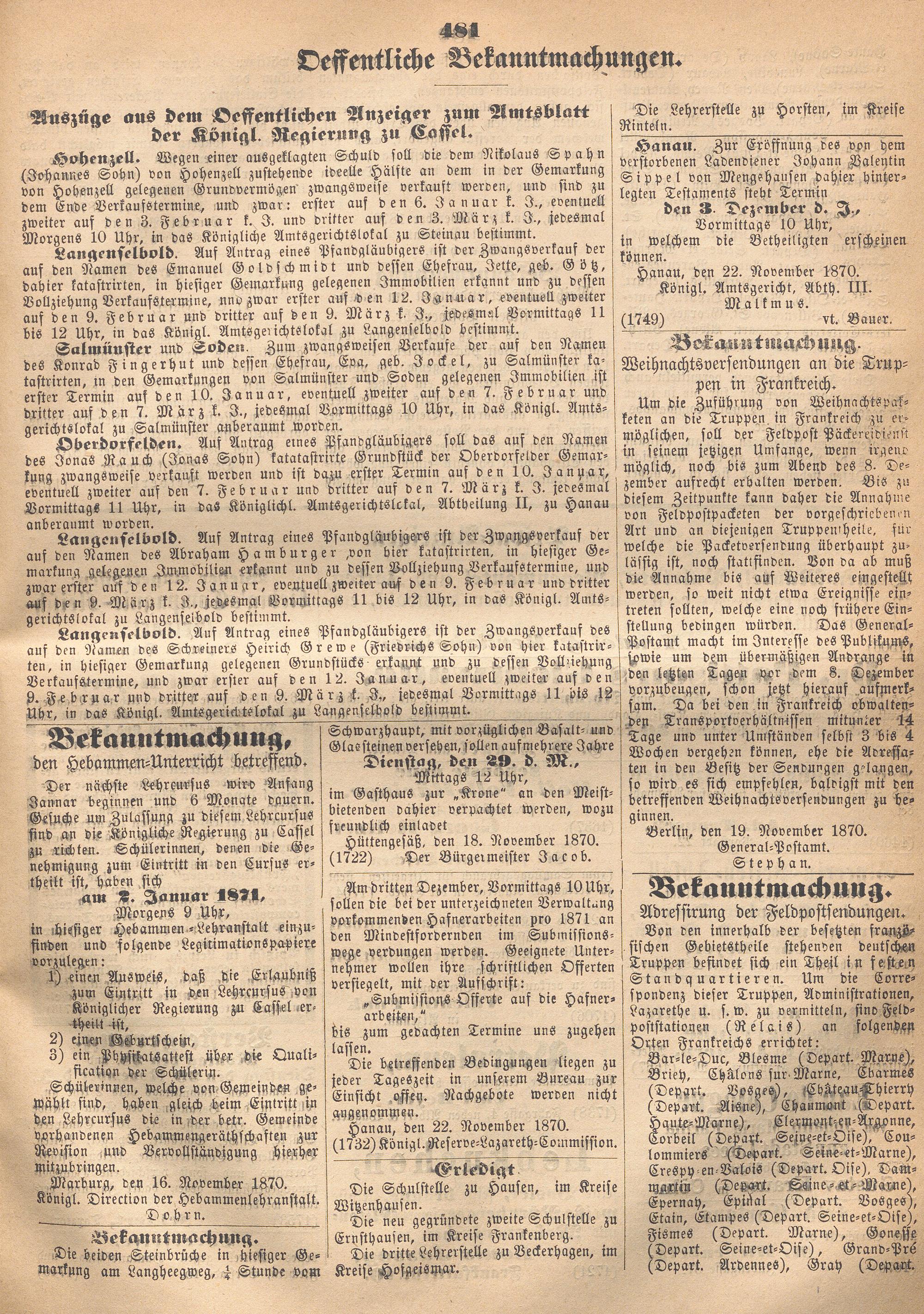 Hanauer Kreisblatt. 1870-1871