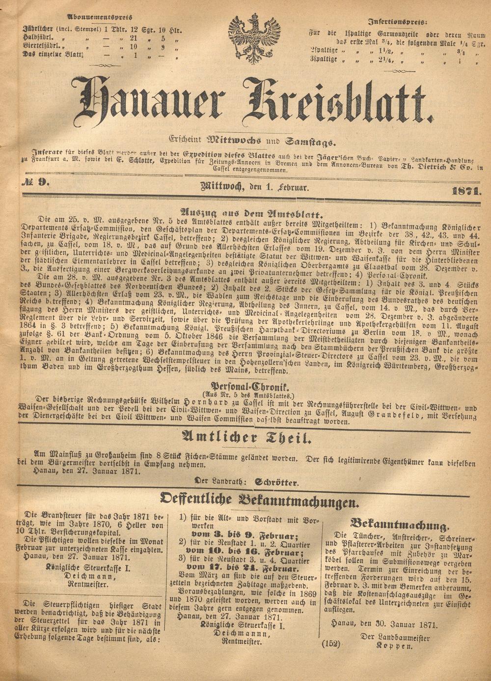 Hanauer Kreisblatt. 1870-1871