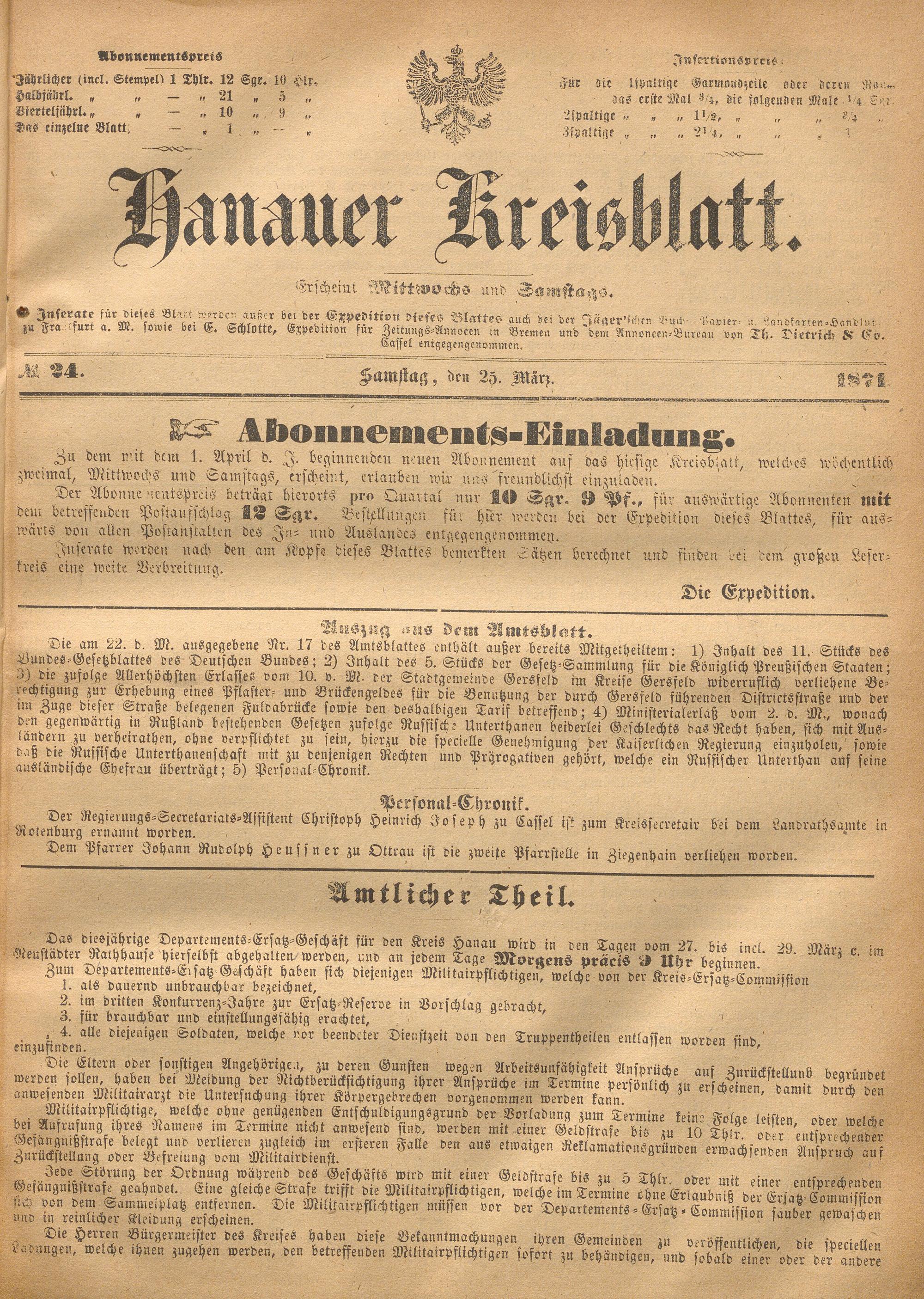 Hanauer Kreisblatt. 1870-1871
