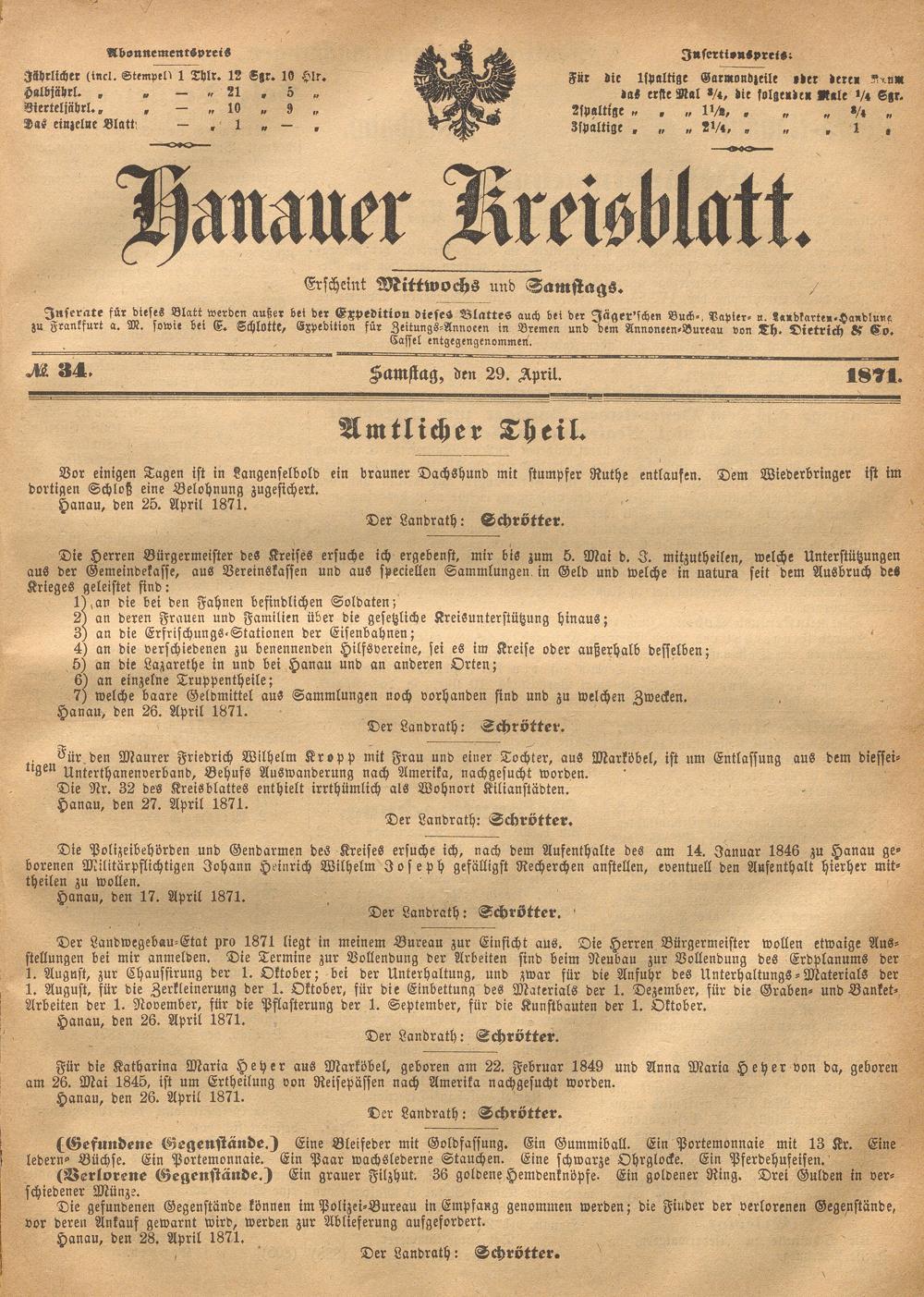 Hanauer Kreisblatt. 1870-1871
