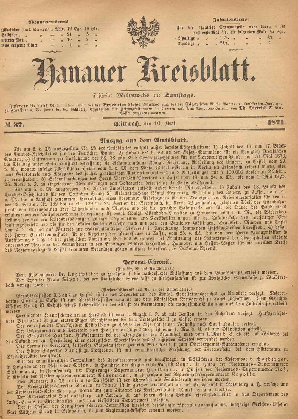 Hanauer Kreisblatt. 1870-1871