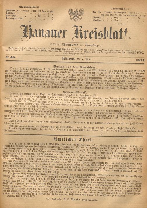 Hanauer Kreisblatt. 1870-1871