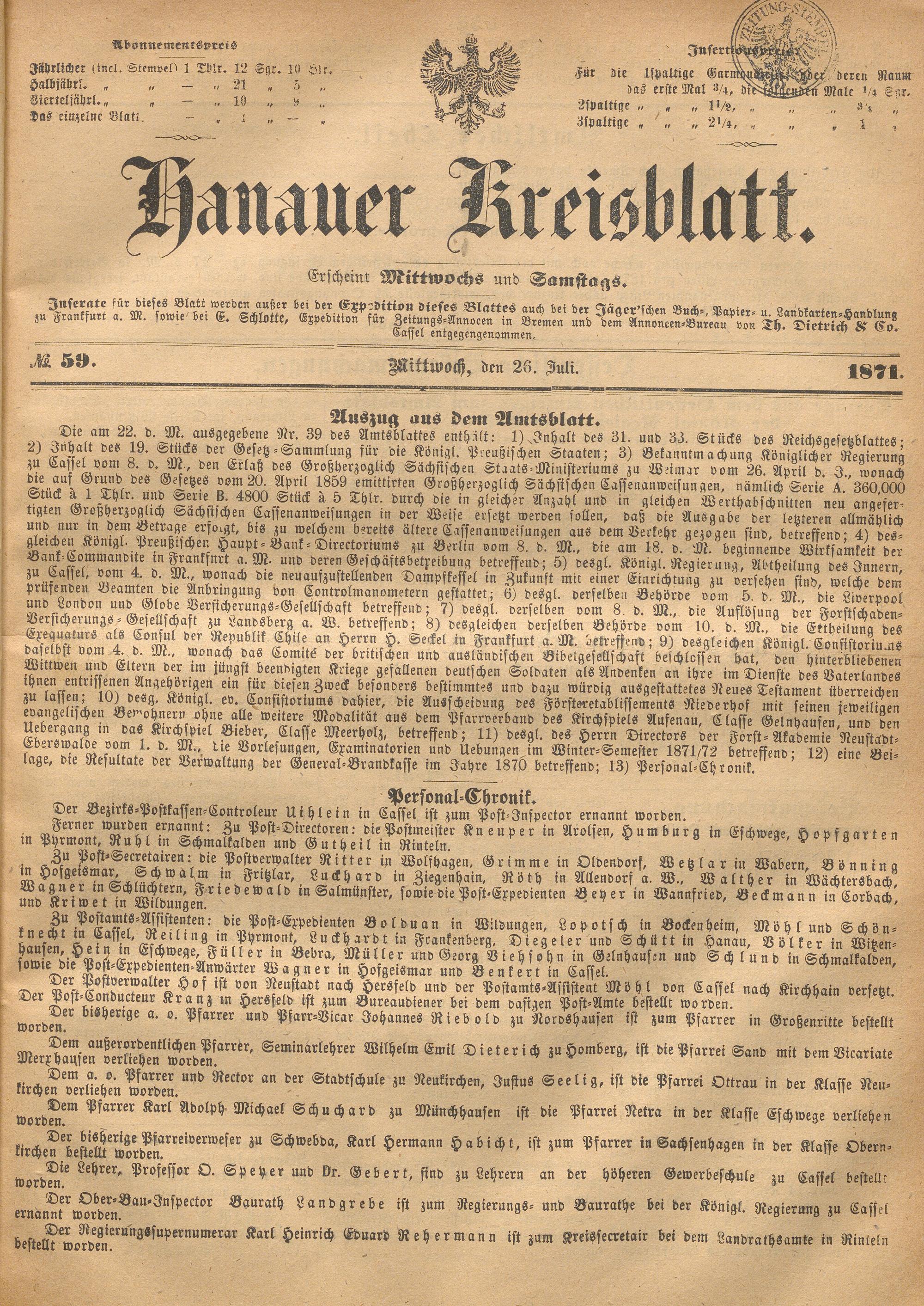 Hanauer Kreisblatt. 1870-1871