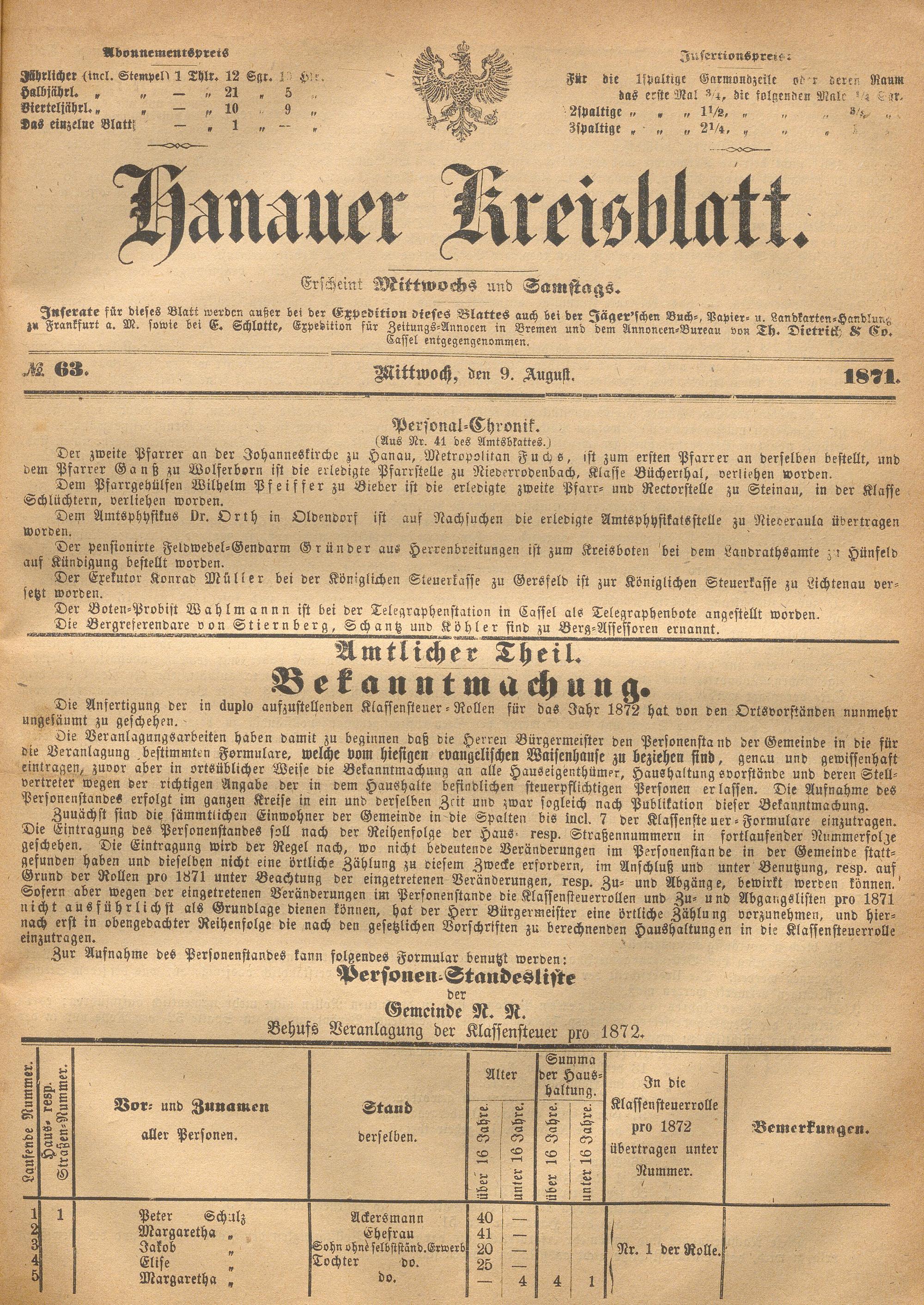 Hanauer Kreisblatt. 1870-1871