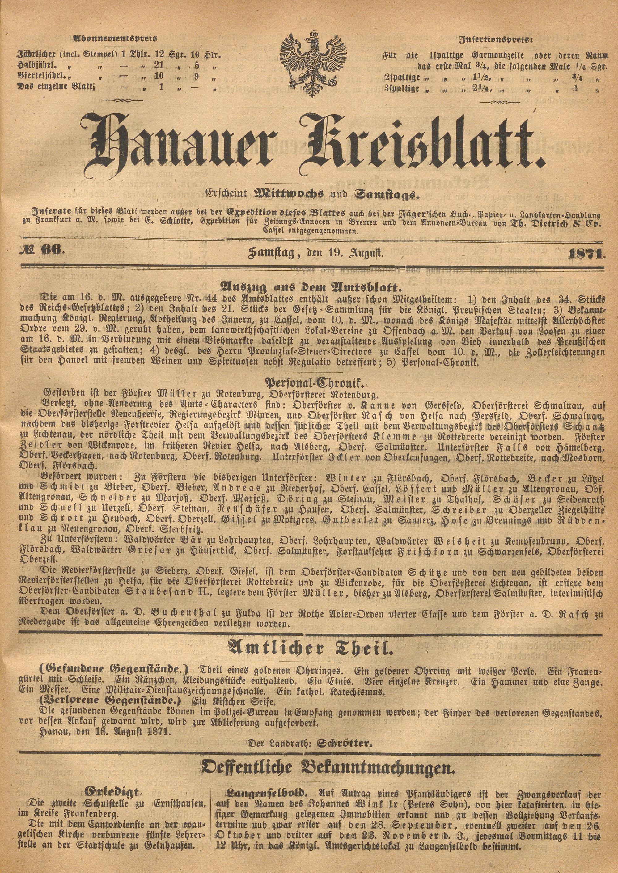 Hanauer Kreisblatt. 1870-1871