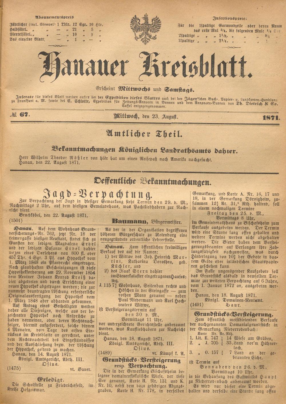 Hanauer Kreisblatt. 1870-1871