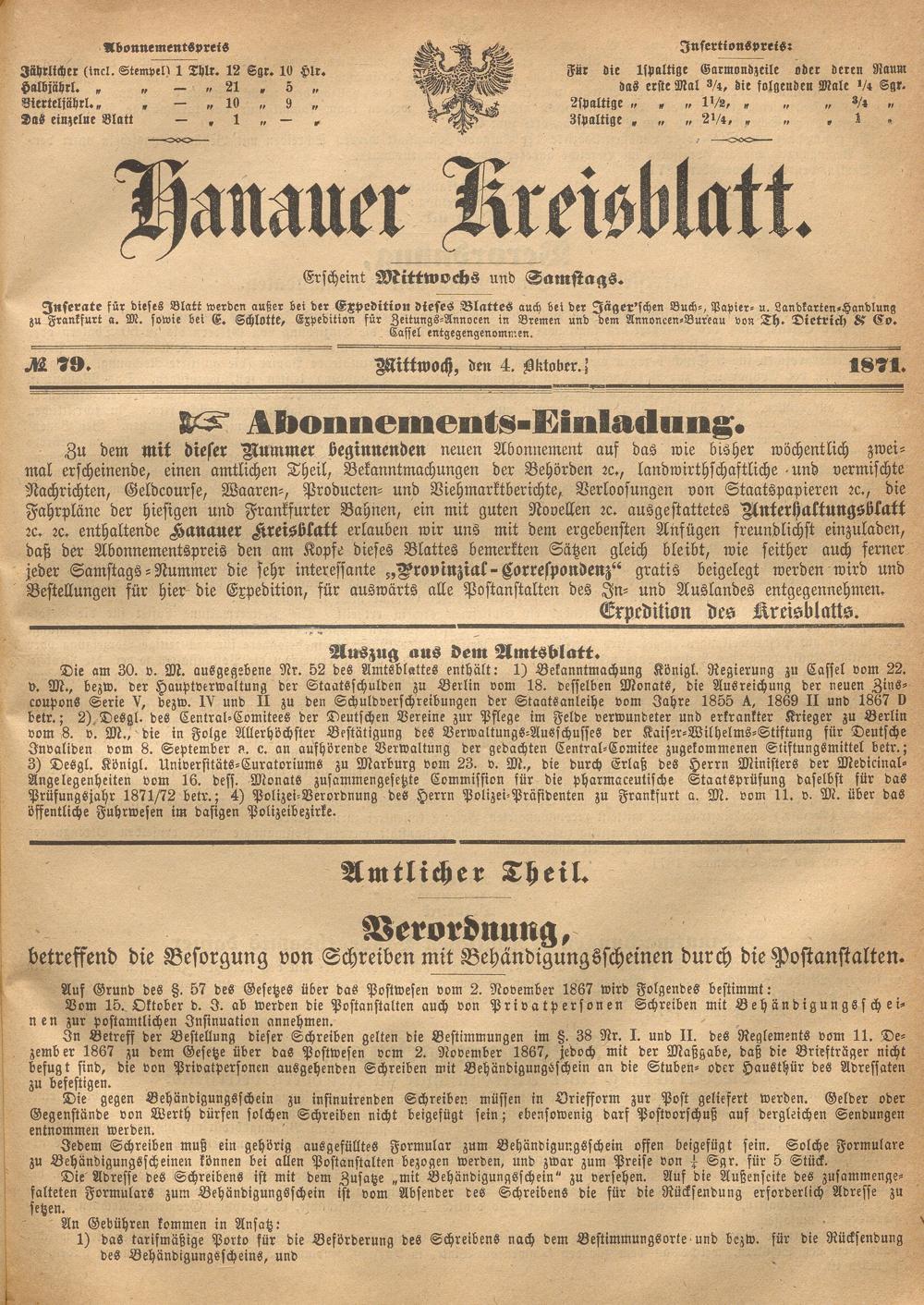 Hanauer Kreisblatt. 1870-1871