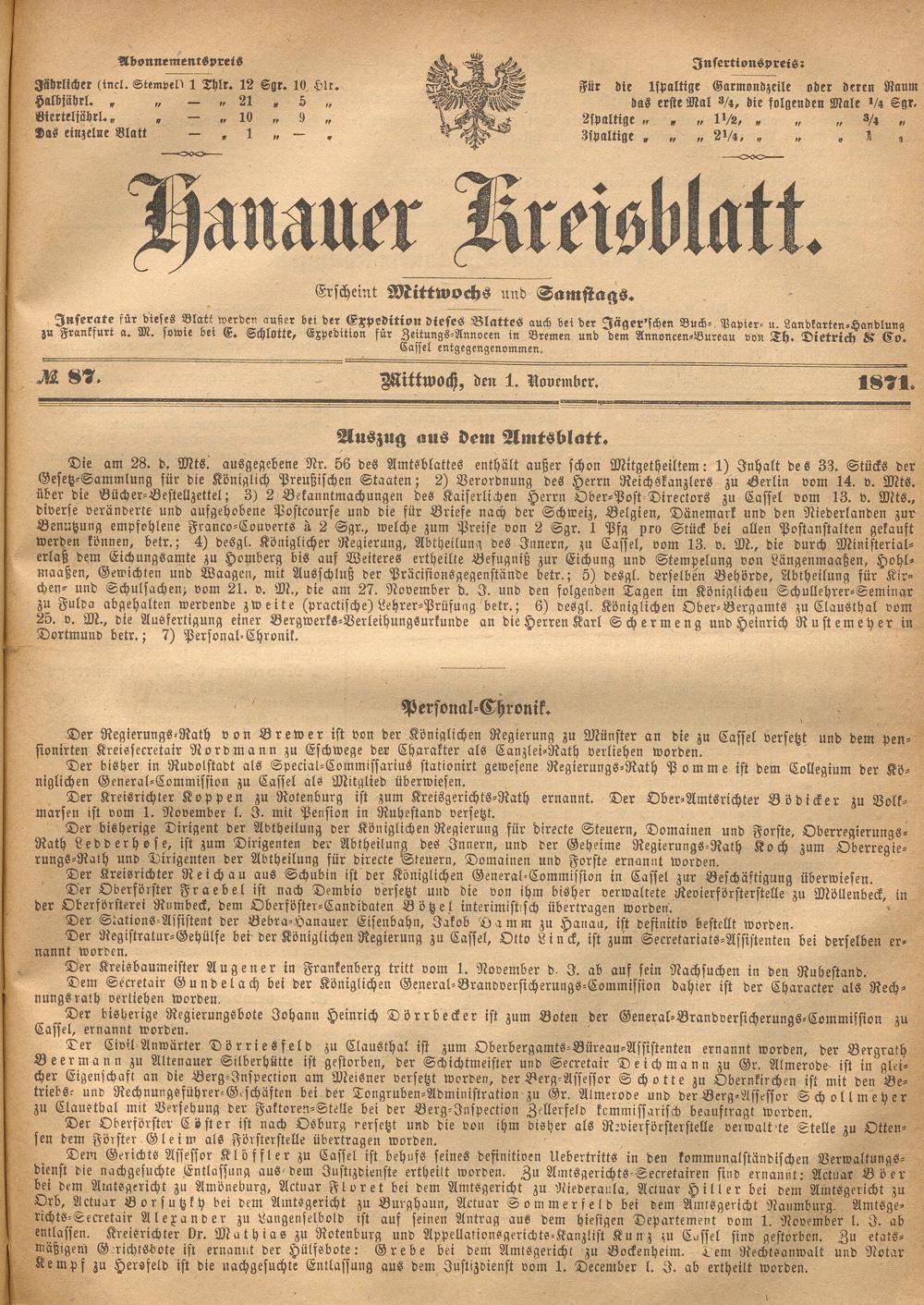 Hanauer Kreisblatt. 1870-1871