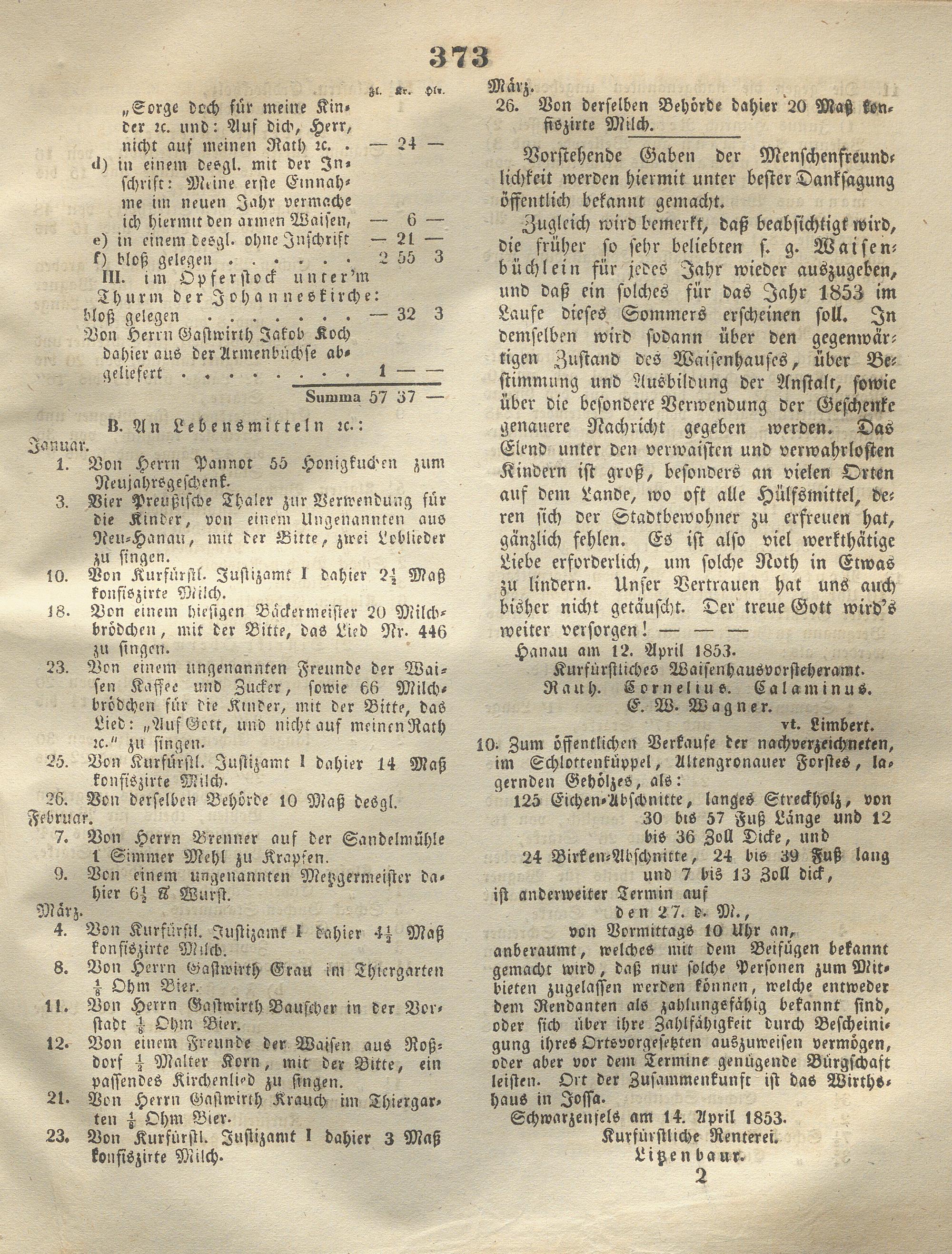 Wochenblatt für die Provinz Hanau. 1851-1866