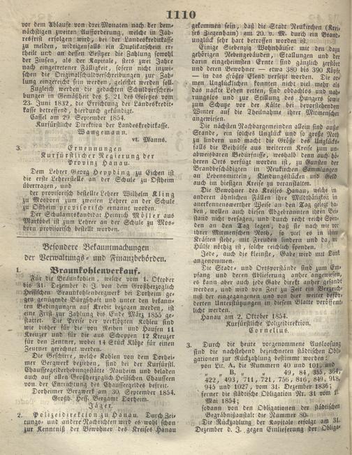 Wochenblatt für die Provinz Hanau. 1851-1866