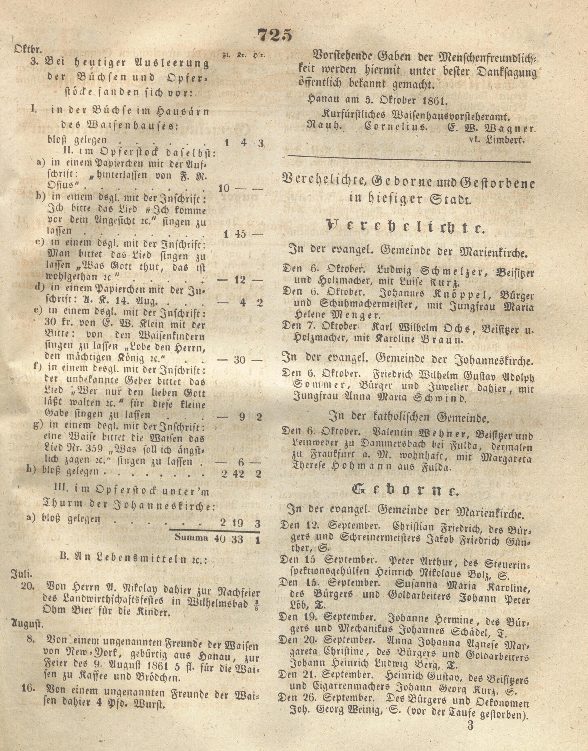 Wochenblatt für die Provinz Hanau. 1851-1866
