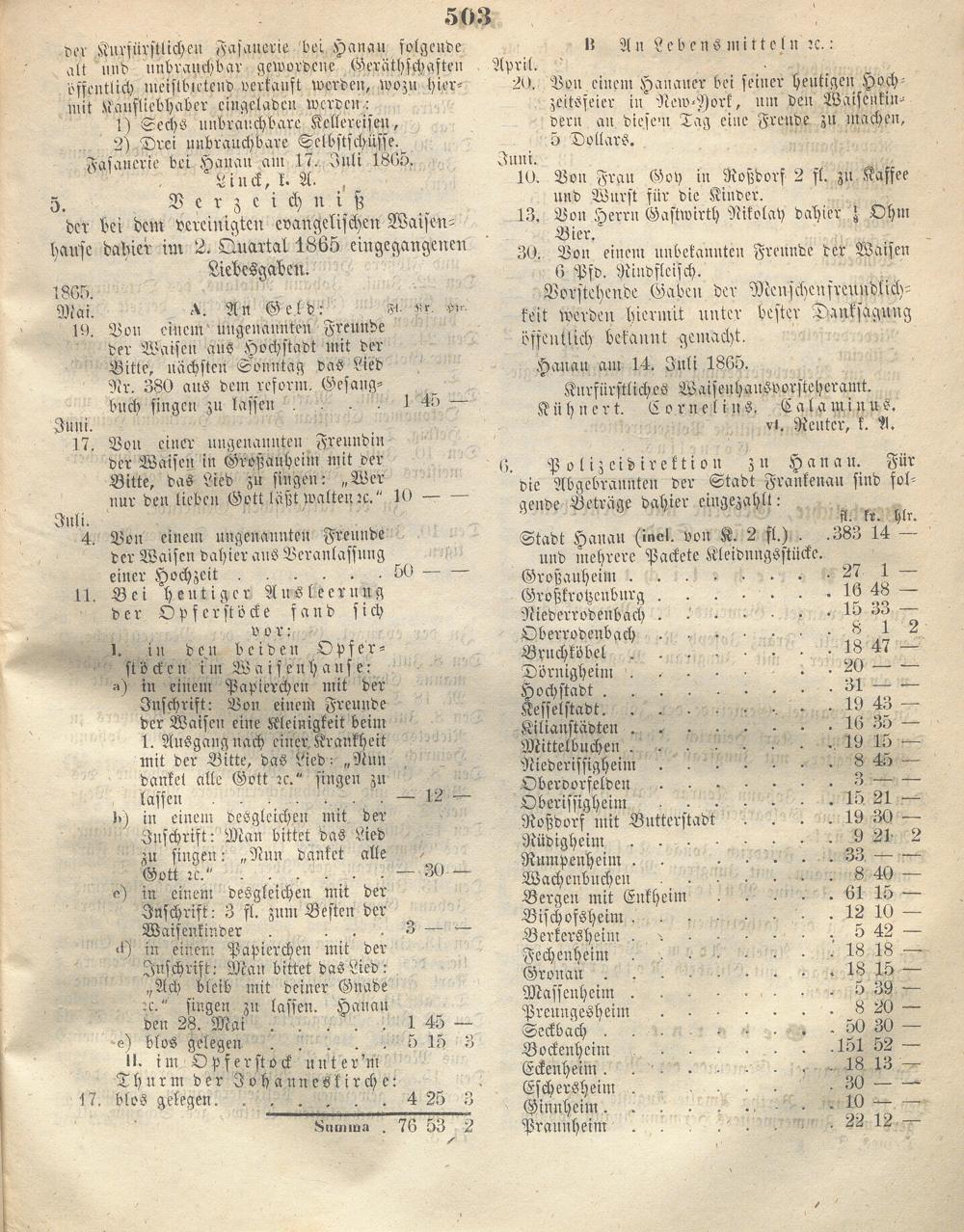 Wochenblatt für die Provinz Hanau. 1851-1866