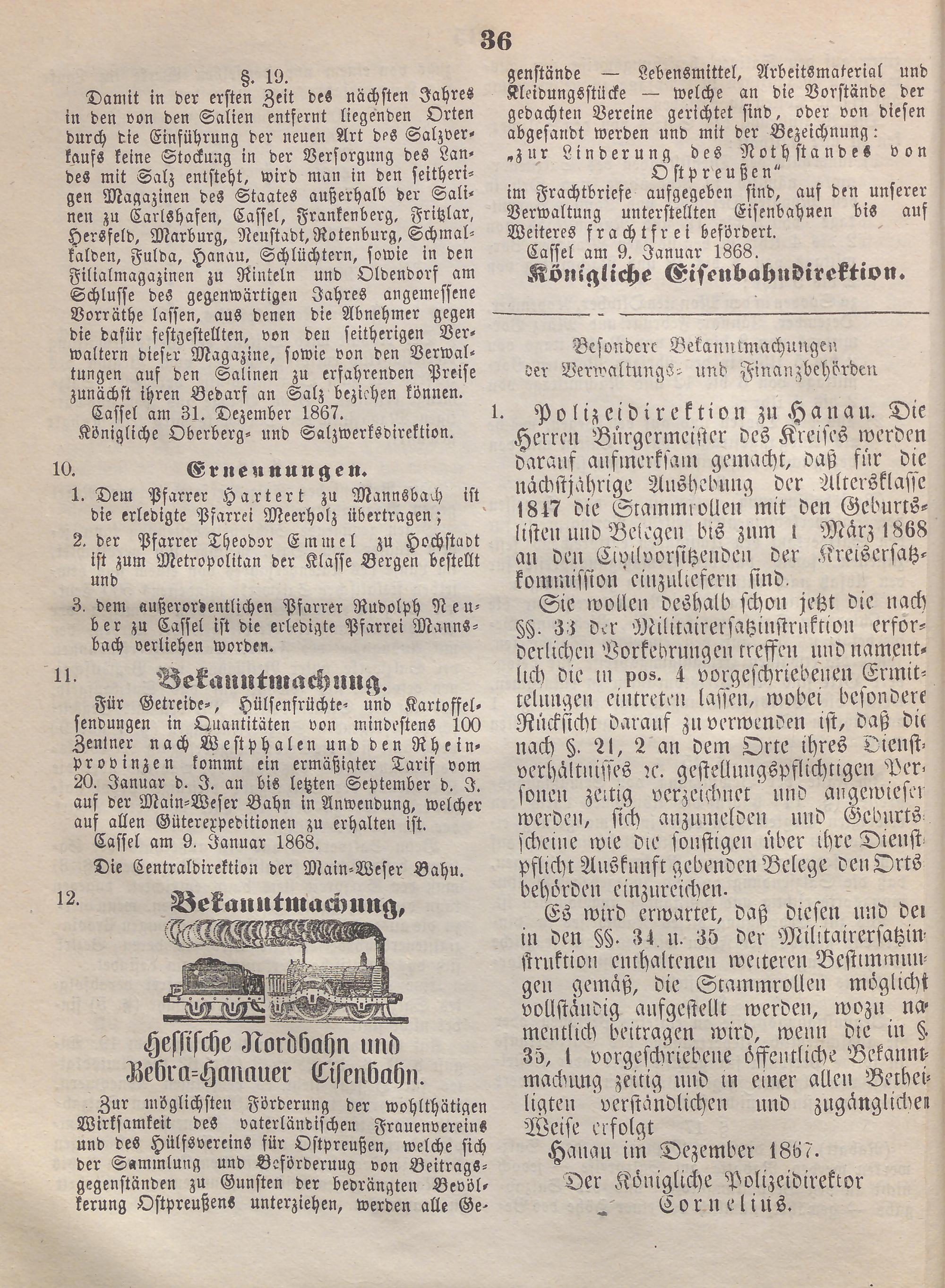 Wochenblatt für den vorhinnigen Regierungsbezirk Hanau. 1867-1868