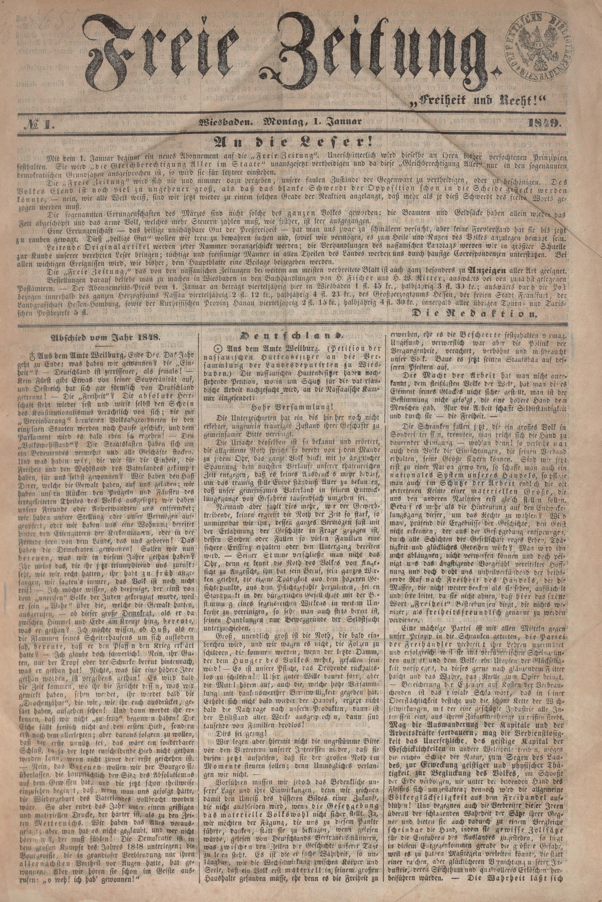 Freie Zeitung. 1848-1851
