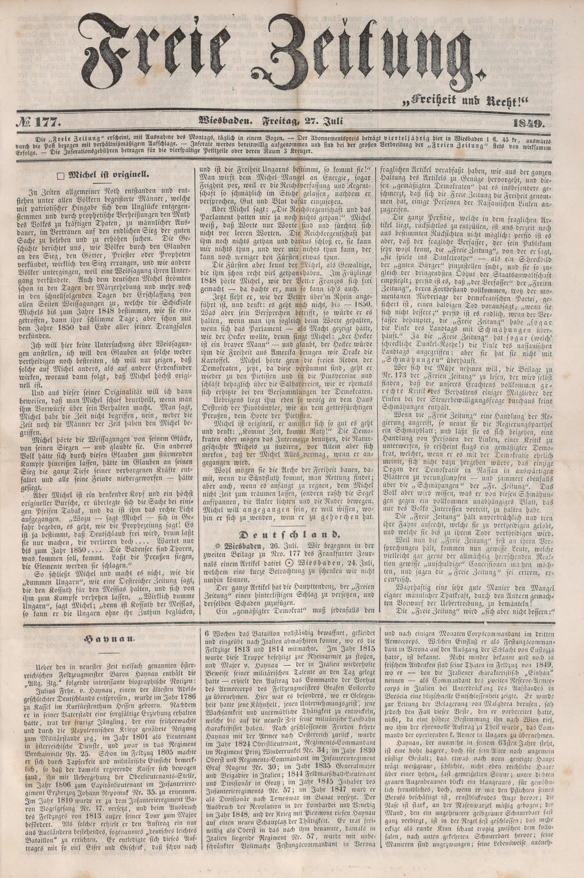 Freie Zeitung. 1848-1851