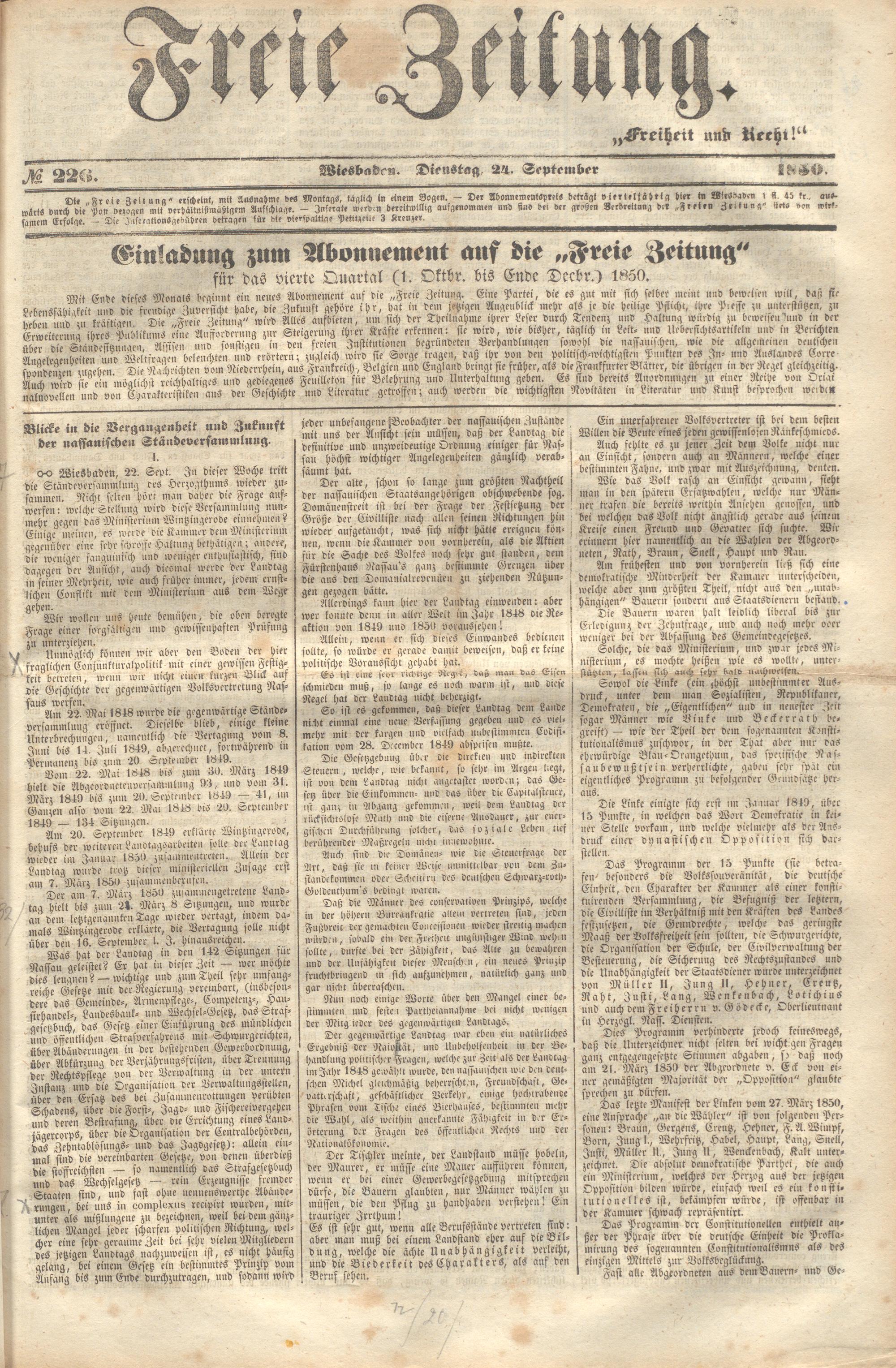 Freie Zeitung. 1848-1851