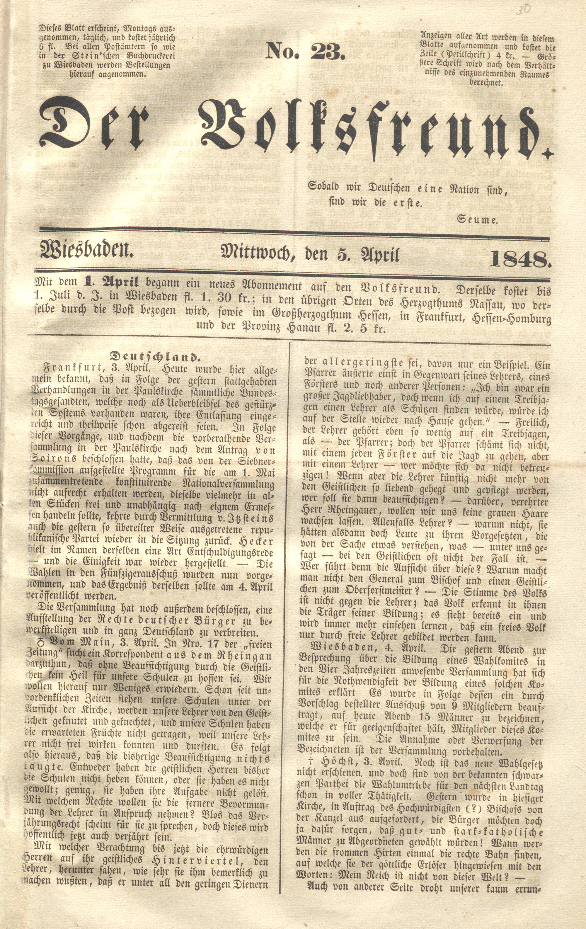 Der Volksfreund. 1848-1848