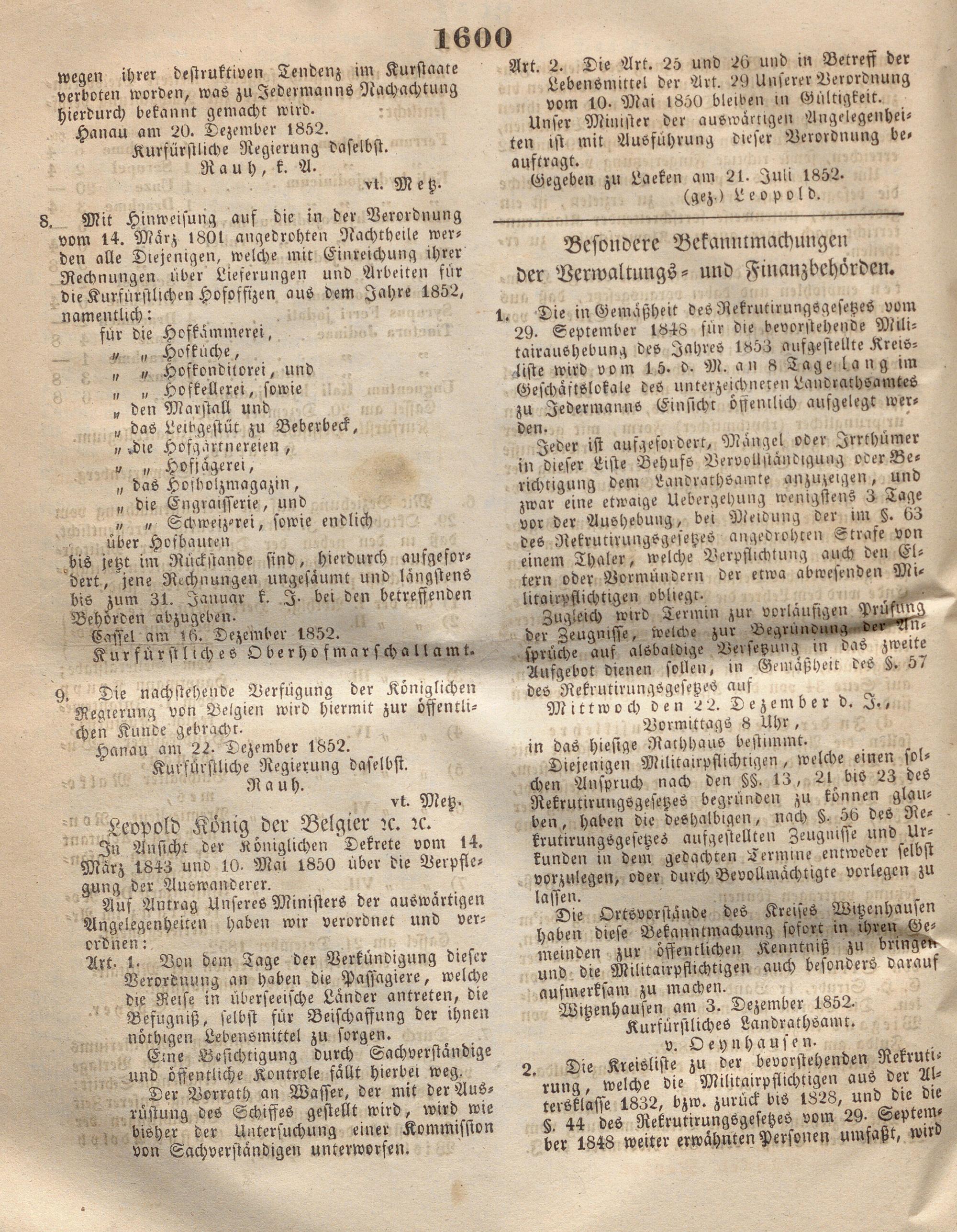 Wochenblatt für die Provinz Hanau. 1851-1866