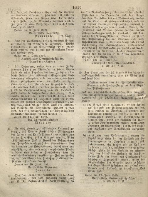 Wochenblatt für die Provinz Hanau. 1851-1866