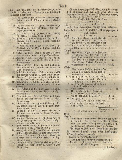 Wochenblatt für die Provinz Hanau. 1851-1866
