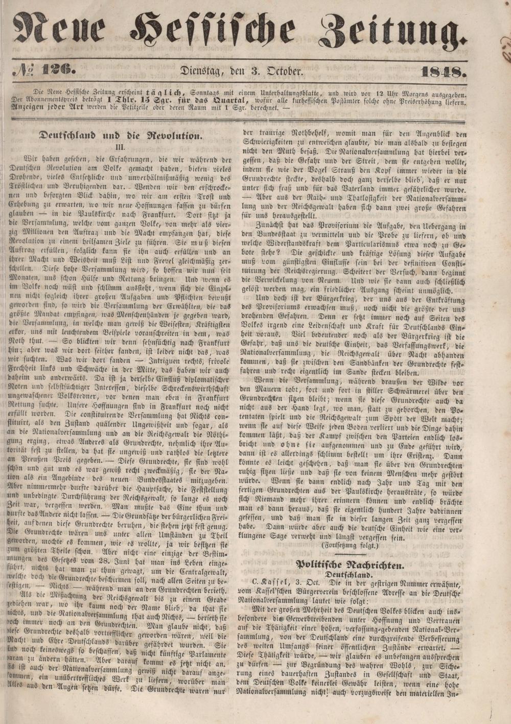 Neue hessische Zeitung. 1848-1850