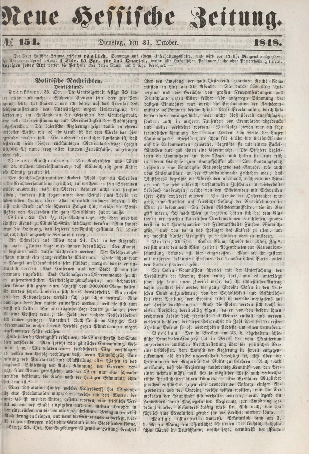 Neue hessische Zeitung. 1848-1850