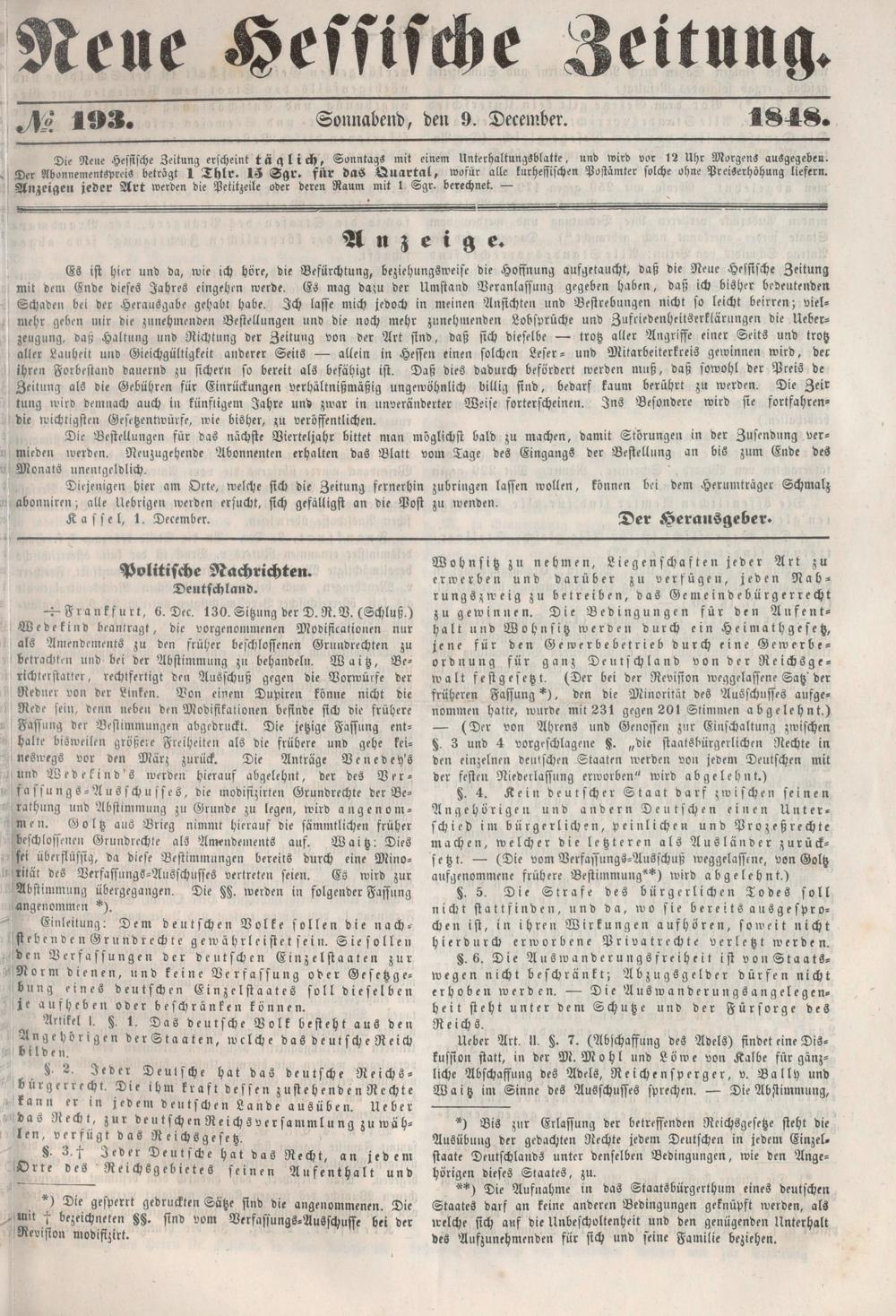 Neue hessische Zeitung. 1848-1850