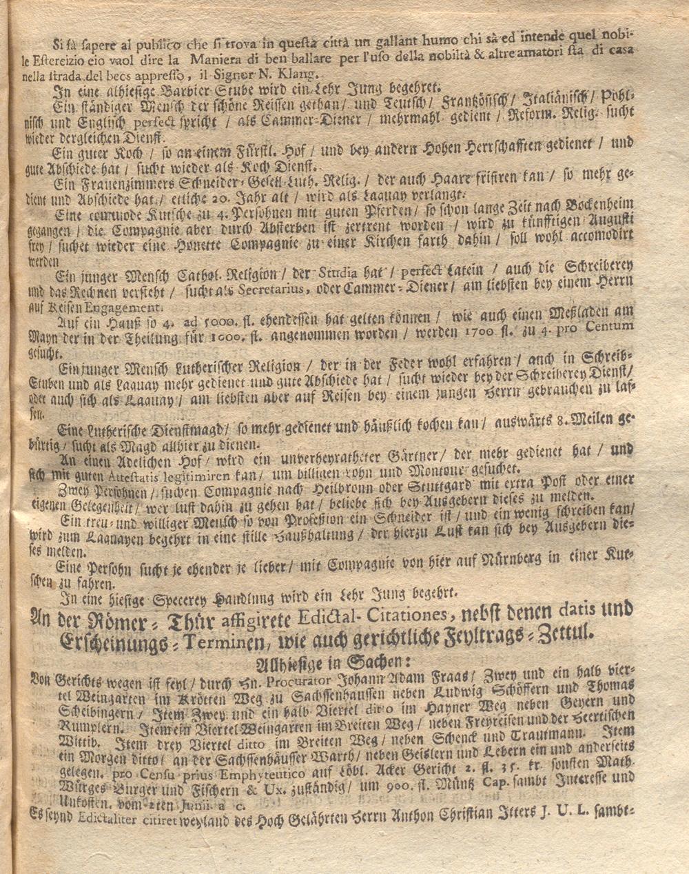 Wochentliche Franckfurter Frag- und Anzeigungs-Nachrichten. 1722-1743