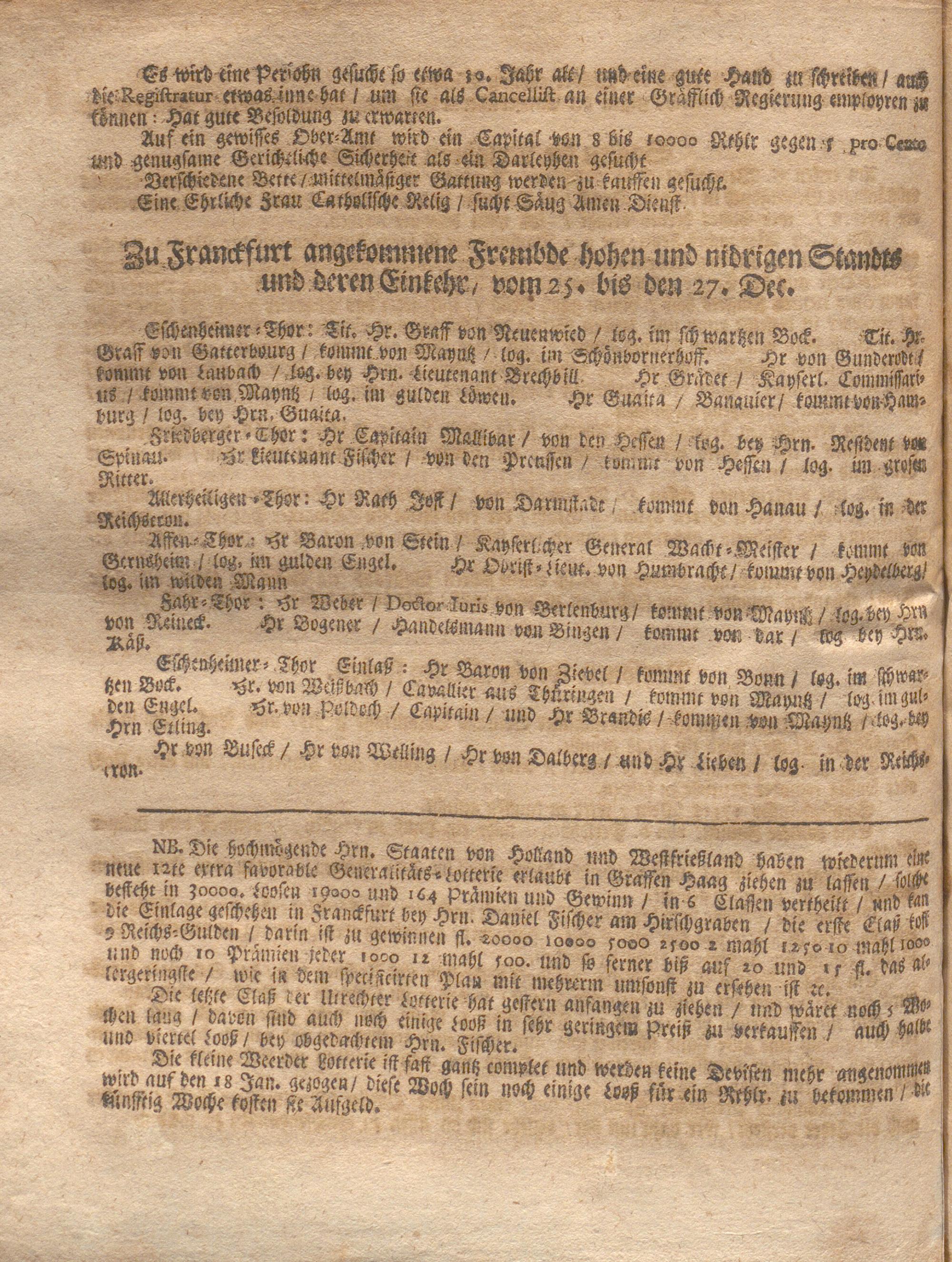 Wochentliche Franckfurter Frag- und Anzeigungs-Nachrichten....