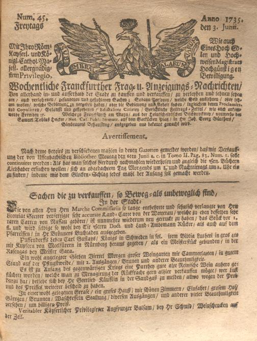 Wochentliche Franckfurter Frag- und Anzeigungs-Nachrichten....