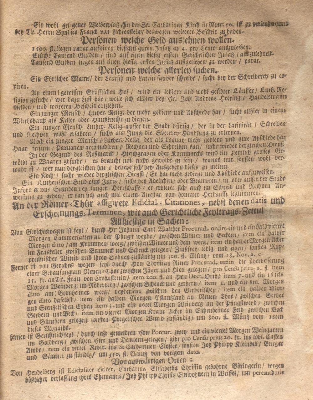 Wochentliche Franckfurter Frag- und Anzeigungs-Nachrichten....