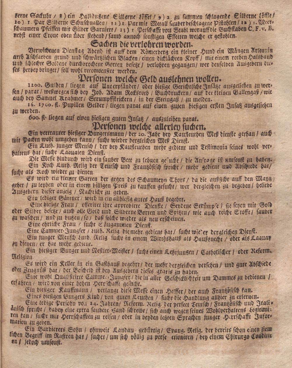 Wochentliche Franckfurter Frag- und Anzeigungs-Nachrichten....