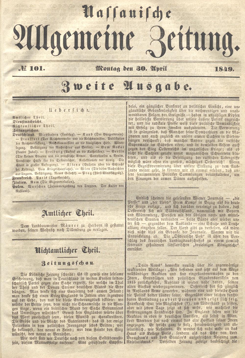 Nassauische Allgemeine Zeitung. 1848-1854