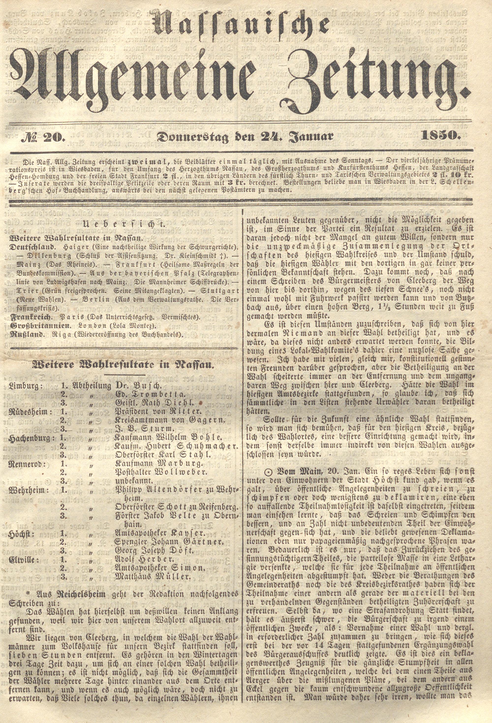 Nassauische Allgemeine Zeitung. 1848-1854