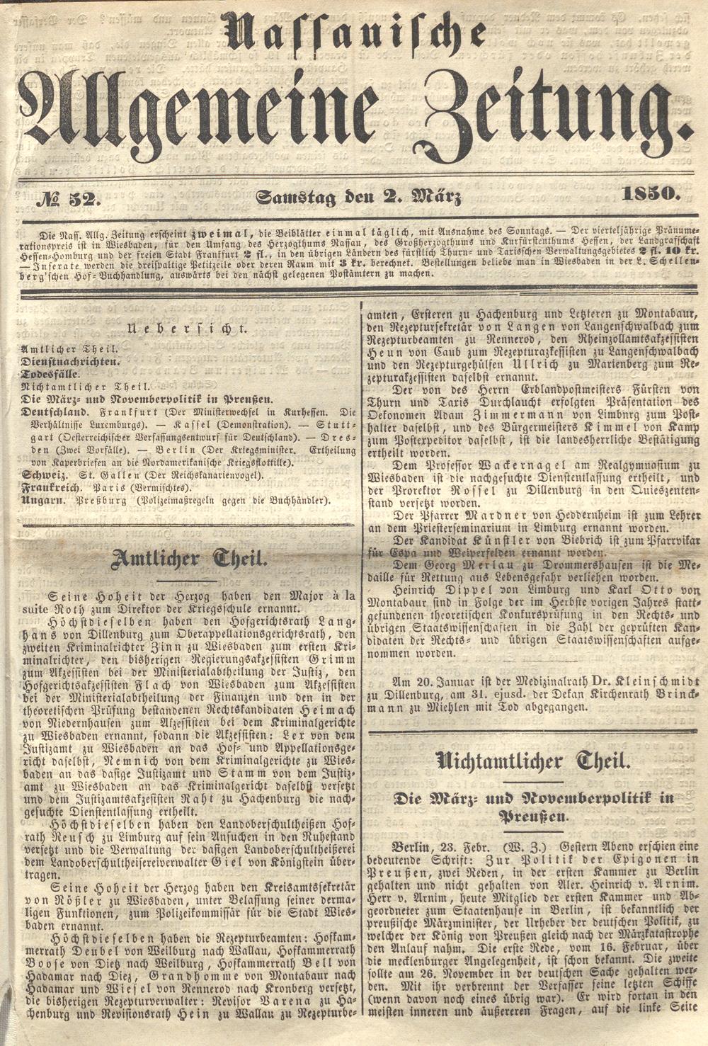Nassauische Allgemeine Zeitung. 1848-1854