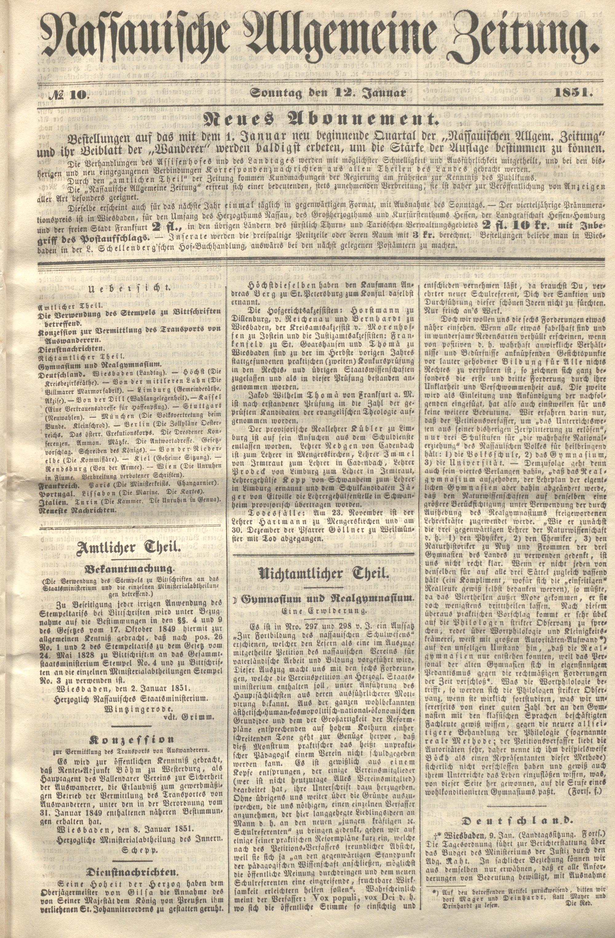 Nassauische Allgemeine Zeitung. 1848-1854
