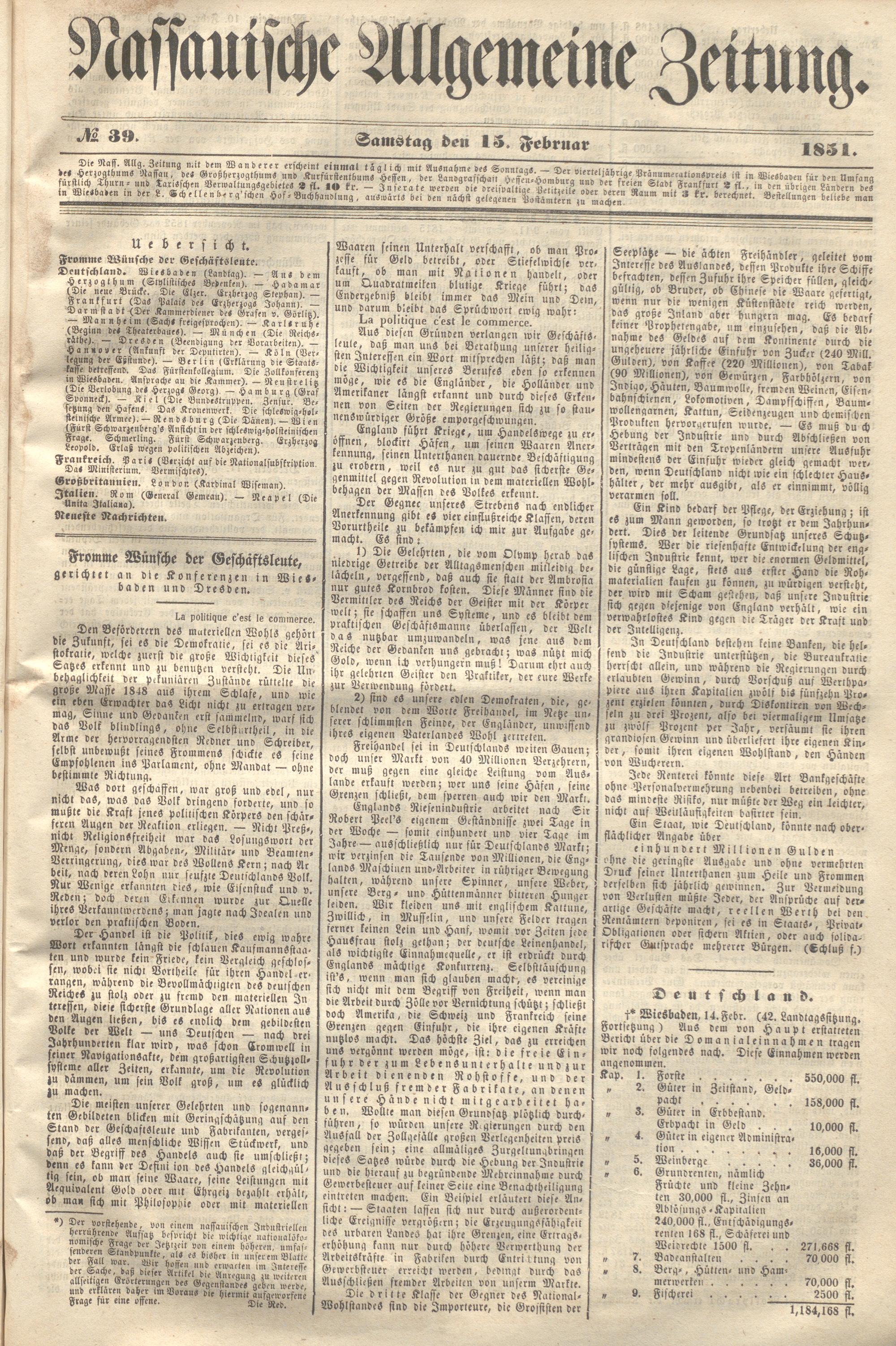 Nassauische Allgemeine Zeitung. 1848-1854