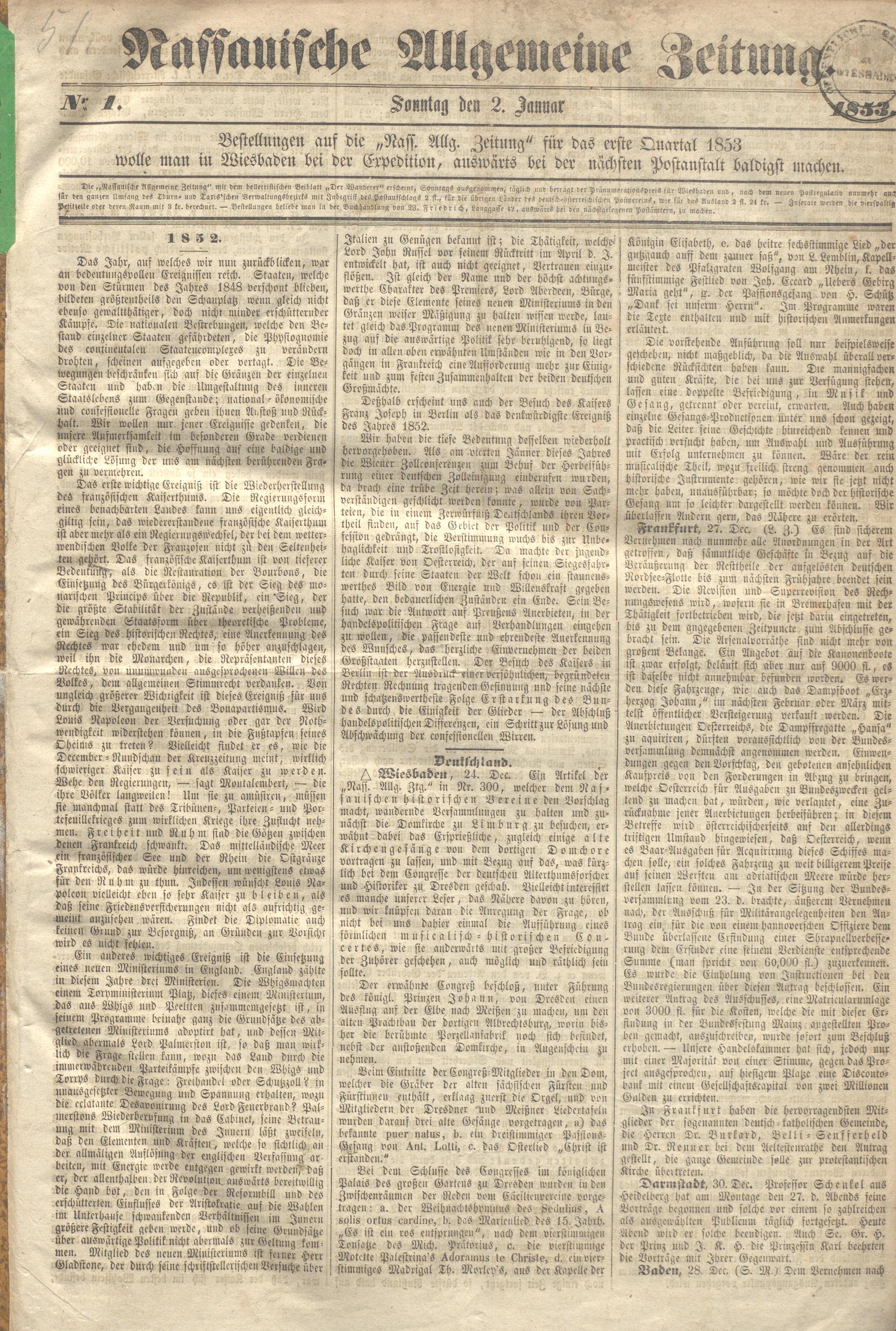 Nassauische Allgemeine Zeitung. 1848-1854