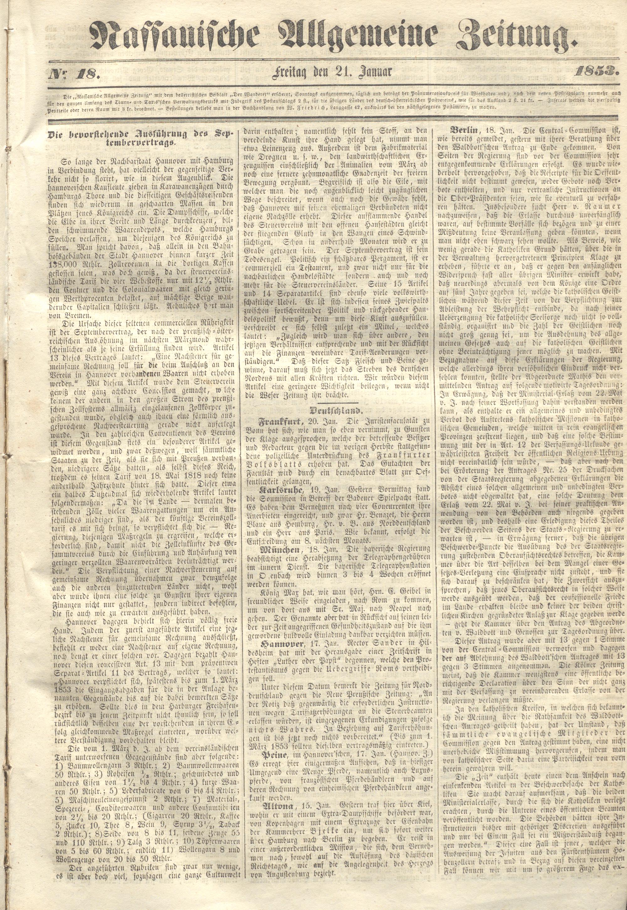 Nassauische Allgemeine Zeitung. 1848-1854