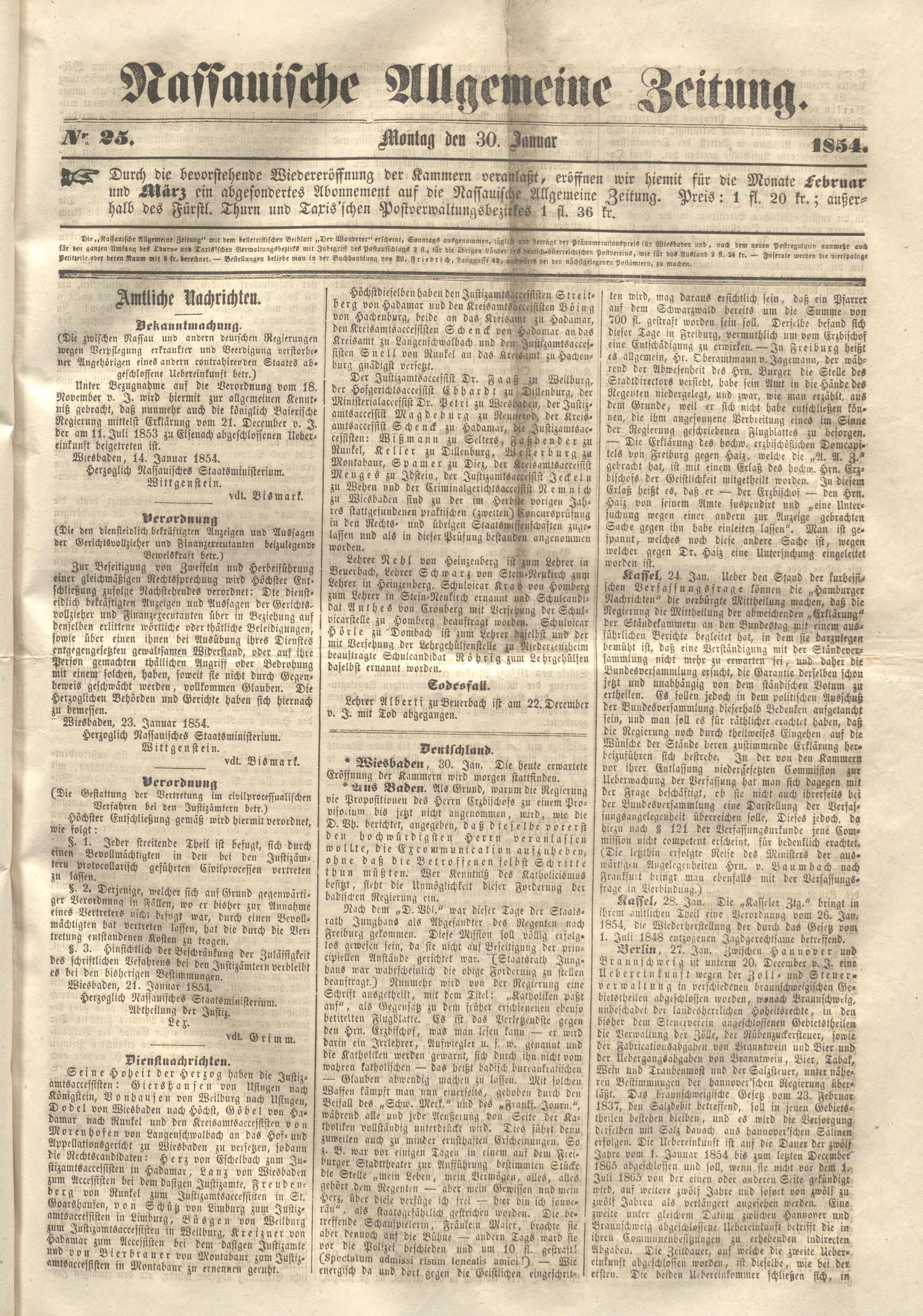 Nassauische Allgemeine Zeitung. 1848-1854