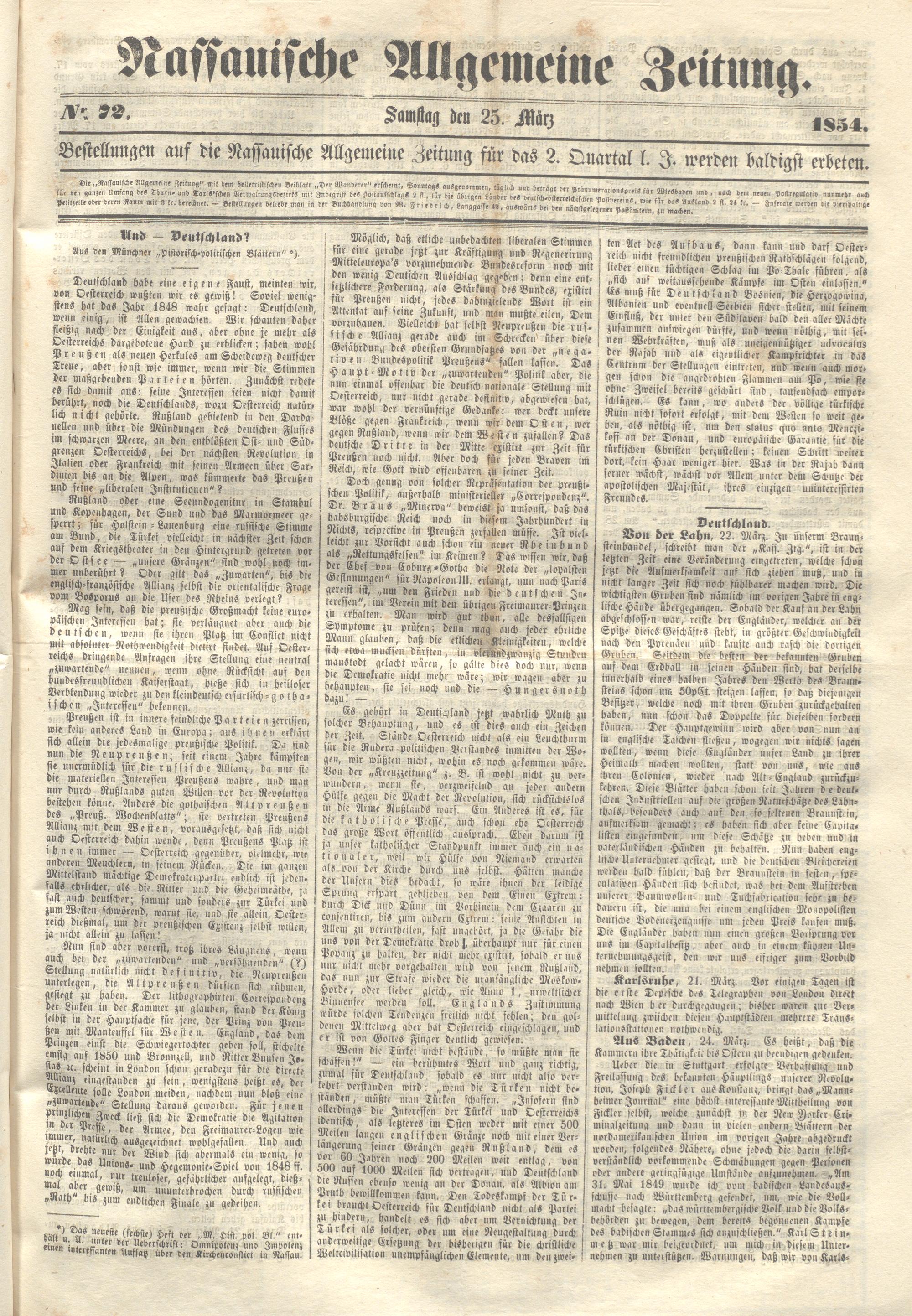 Nassauische Allgemeine Zeitung. 1848-1854