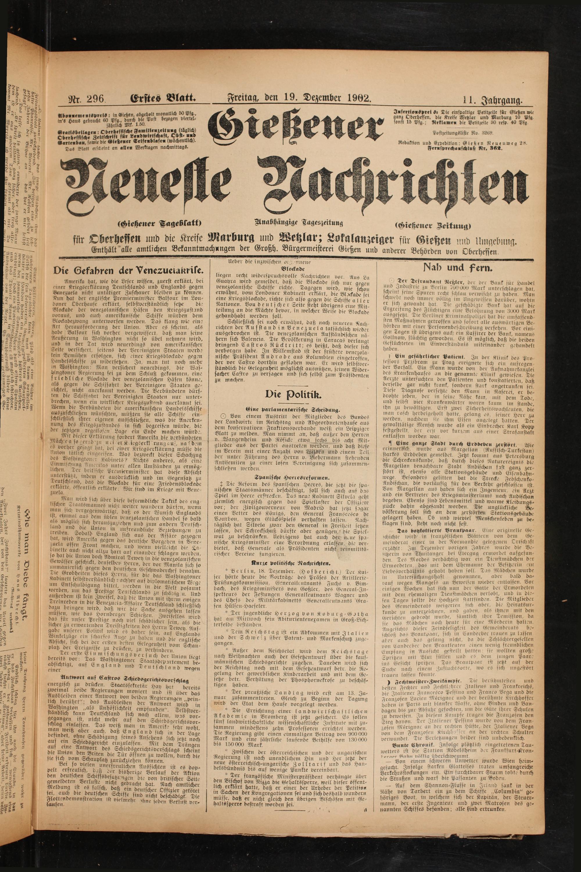 19.12.1902 Erstes Blatt