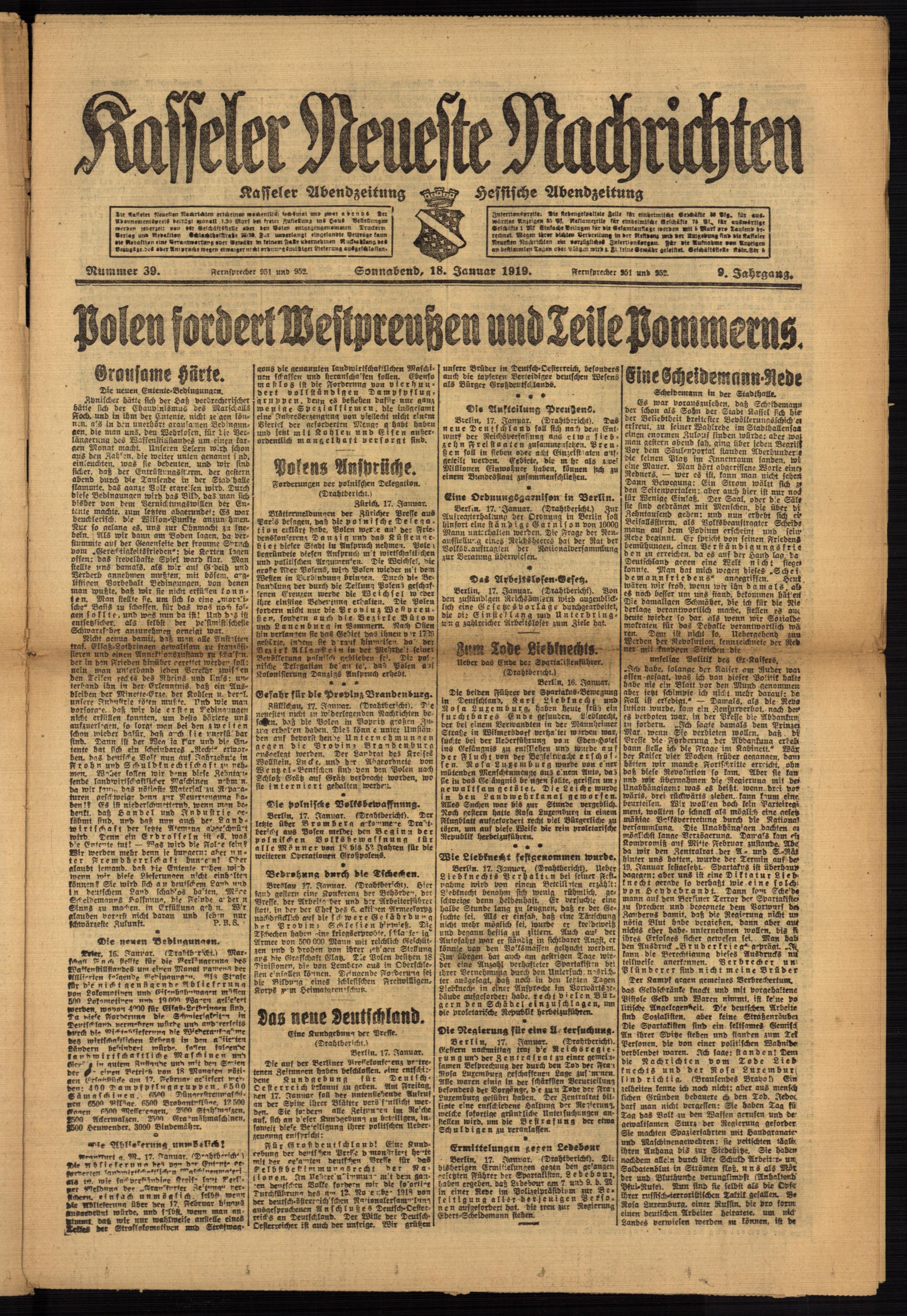 Casseler neueste Nachrichten. 1914-1918