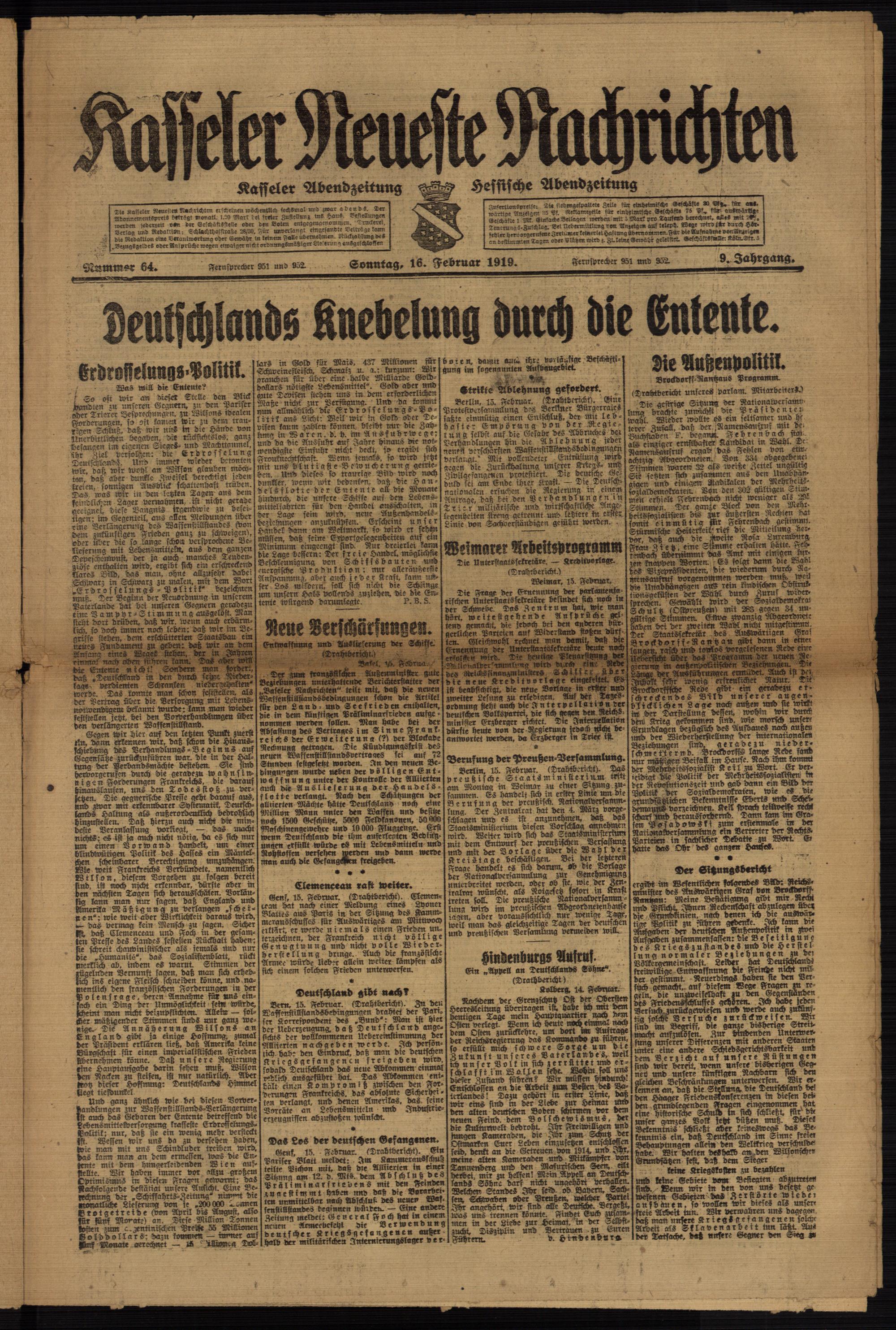 Casseler neueste Nachrichten. 1914-1918