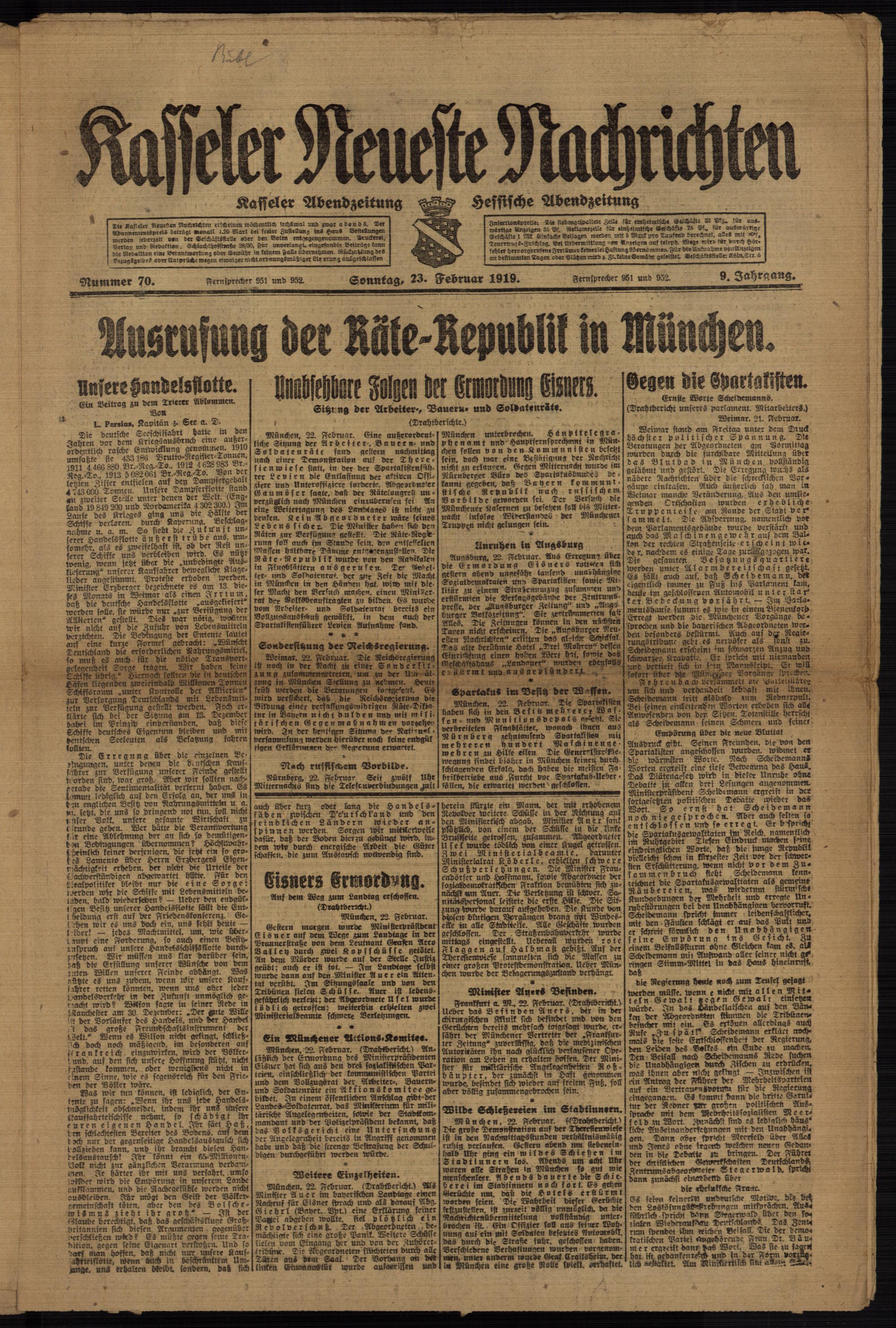 Casseler neueste Nachrichten. 1914-1918
